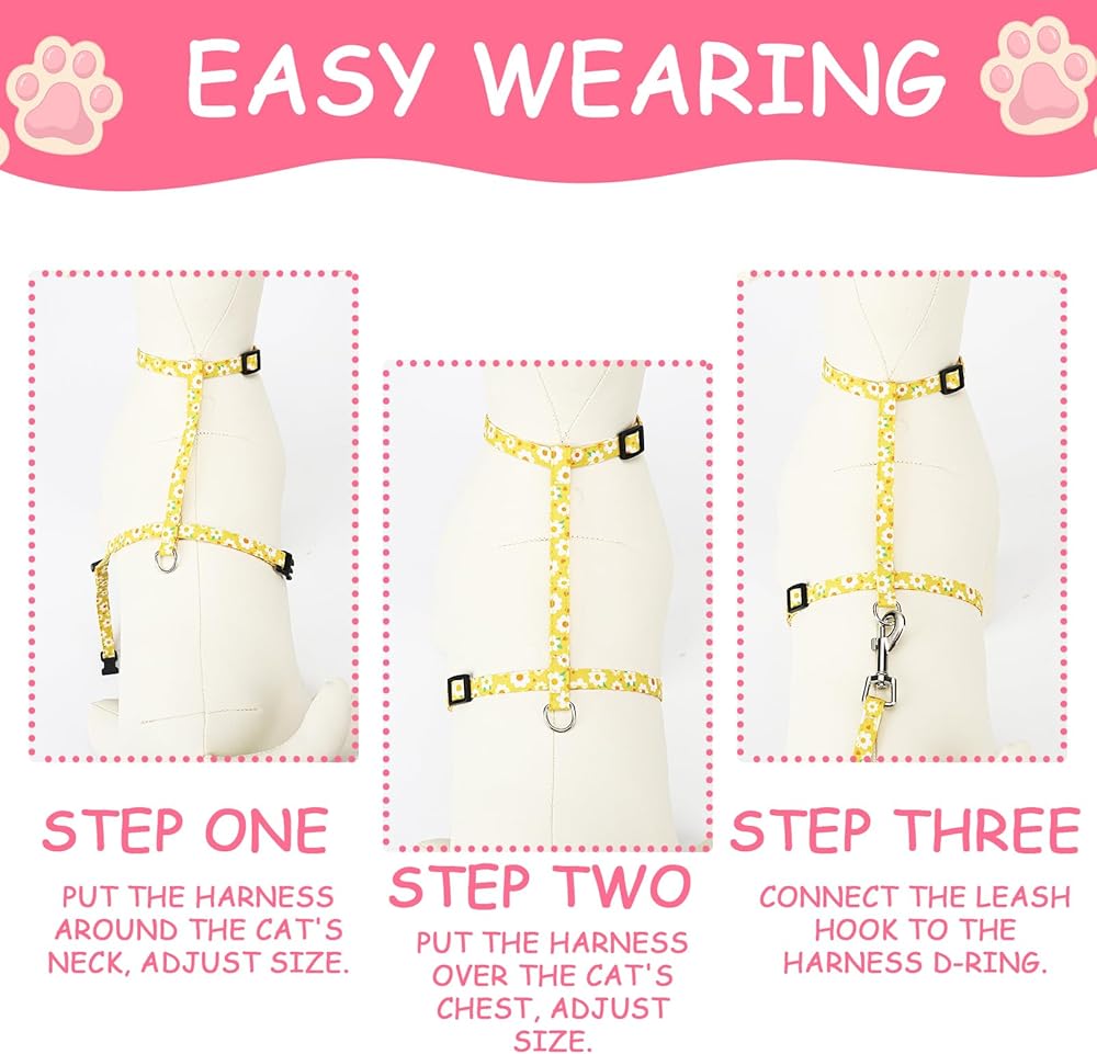 • تصميم زهور لطيف: تتميز مجموعة سرج ومقود القطط بتصميم زهور لطيف، لطيف ومنعش، مما يجعل قطتك تبدو أكثر جاذبية ولطيفة وأنيقة.