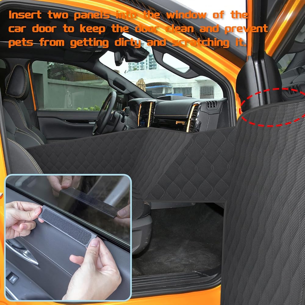 • حماية مقعد السيارة: حماية جيدة لغطاء المقعد الأمامي لسيارتك؛ حماية المقعد الأمامي من الخدوش. ذرف الكلب. البقع. متسخ؛ حماية ألواح أبواب سيارتك من الخدوش؛ من السهل على الكلب الصعود والنزول من السيارة
