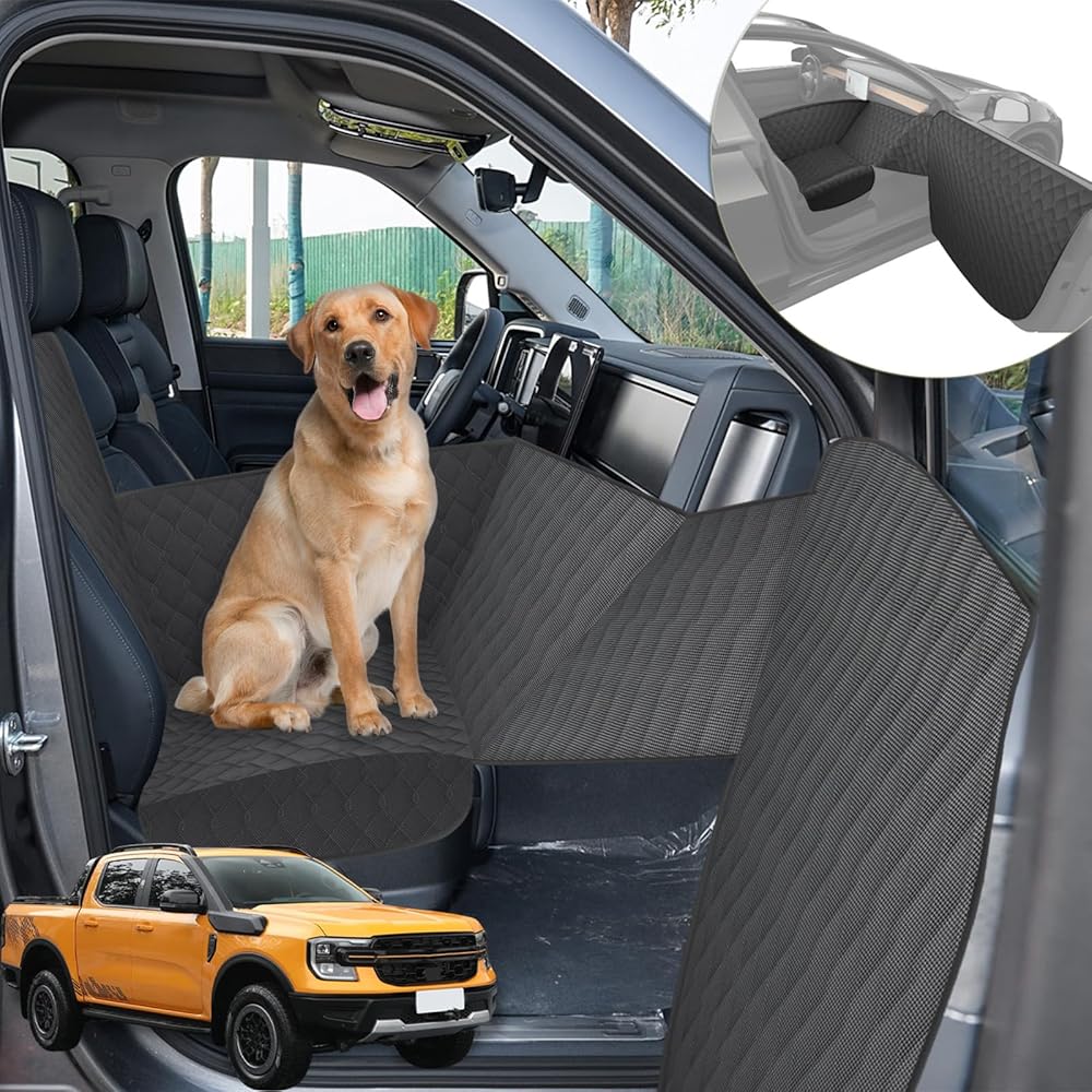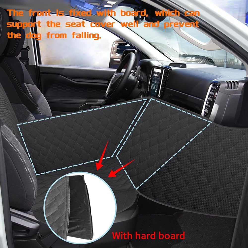 RUANTE مقعد سيارة للكلب غطاء مقعد أمامي للحيوانات الأليفة أثناء السفر، مقعد سيارة للحيوانات الأليفة، مقعد معزز للحيوانات الأليفة، غطاء مقعد أمامي للكلب مع لوحة جانبية لباب السيارة وبوراد صلب عالمي لشاحنات النقل (أسود)