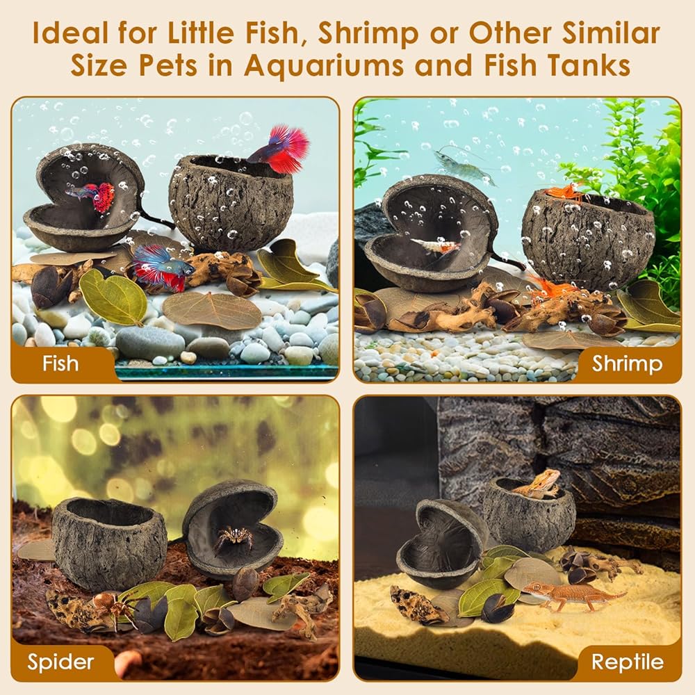 للحيوانات الأليفة المائية والبرمائيات: وعاء التربية وكهف الجوز المخبأ مثاليان للأسماك للتكاثر واللعب والاختباء والراحة. ستحب أيضًا هذه المجموعة من ديكورات أحواض السمك البيتا، والغوبي، والروبيان، والحلزون، والعنكبوت، والليزار الصغير.
