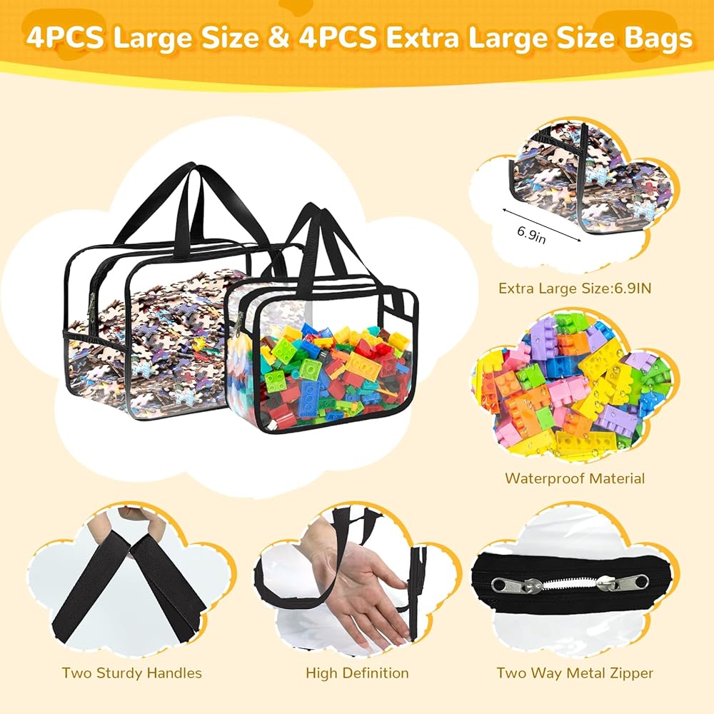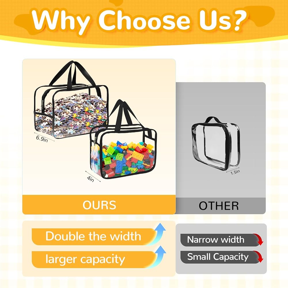【تصميم ذو سعة كبيرة】حجم أكياس الألغاز الشفافة لتخزين الأطفال هو 11.8 × 8.7 × 4 بوصة، مع زيادة العرض إلى 4 بوصة، مما يسمح بسعة أكبر لتخزين ألعاب الأطفال الصغيرة. يساعد هذا التصميم في فرز تخزين الألعاب، وتجنب صعوبة العثور على ألعاب صغيرة في صندوق الألعاب، ويجعل من السهل الحفاظ على الغرفة منظمة ومرتبة.