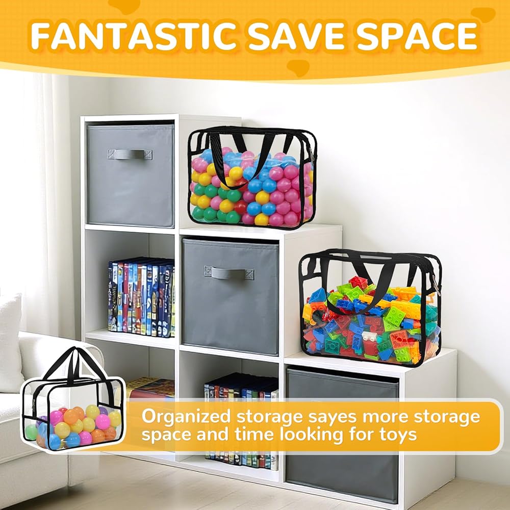 【منظمات عالية الجودة】حقائب تخزين الألعاب الخاصة بنا مصنوعة من مادة PVC الآمنة وعديمة الرائحة. سطحه الشفاف ليس فقط مقاومًا للغبار والماء ولكنه أيضًا سهل التنظيف. بالإضافة إلى ذلك، فهو يتميز بسحاب معدني قوي وحزامين لليد معززين لمزيد من المتانة والراحة
