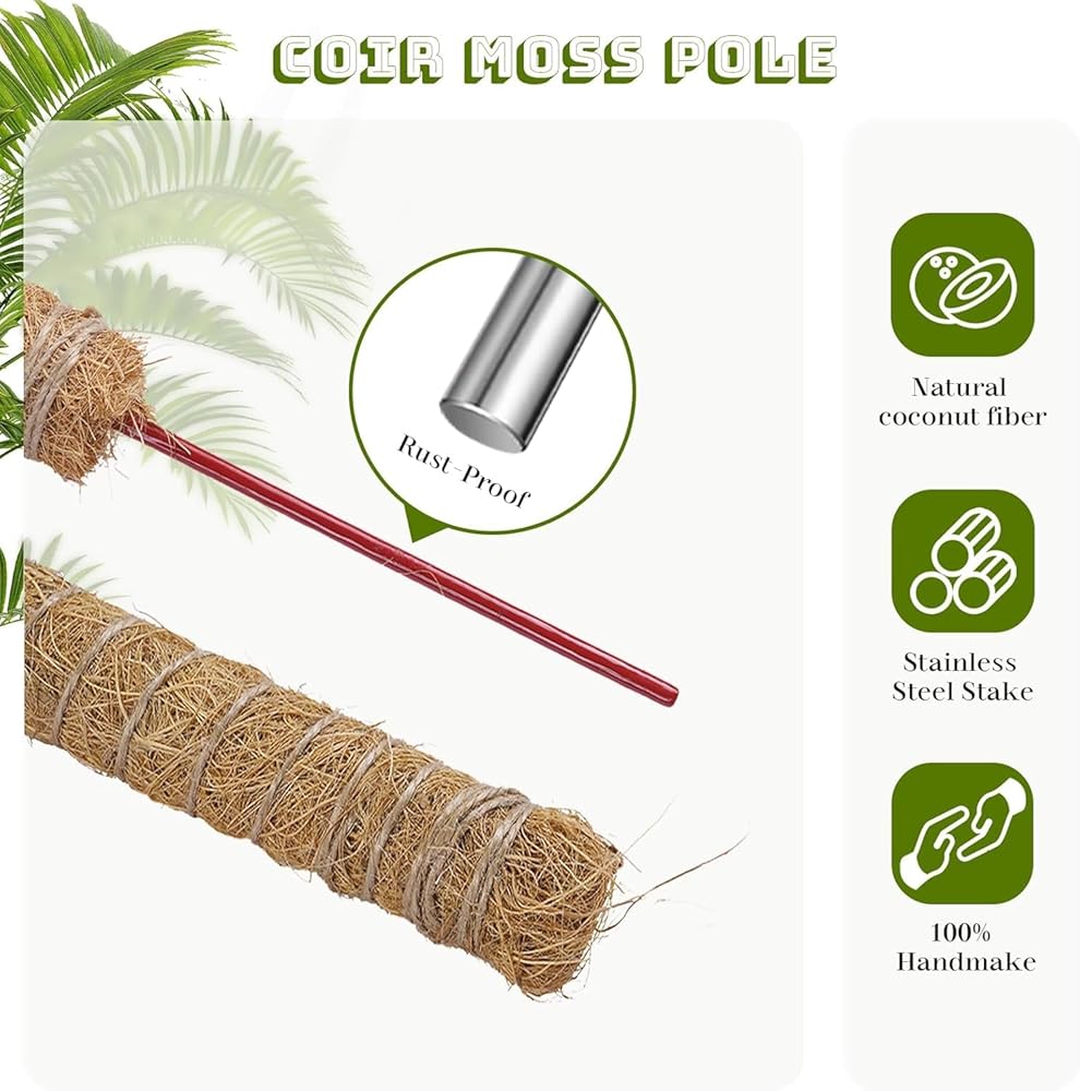 【مواد عالية الجودة】أقطاب الطحالب الخاصة بنا مصنوعة من ألياف طحالب جوز الهند الطبيعية النقية مع امتصاص قوي للماء. القلب الداخلي لعصا الطحلب مرن ولن يصدأ أو ينحني أثناء الاستخدام. يمكنه الحفاظ على الحزم والاستقرار على المدى الطويل