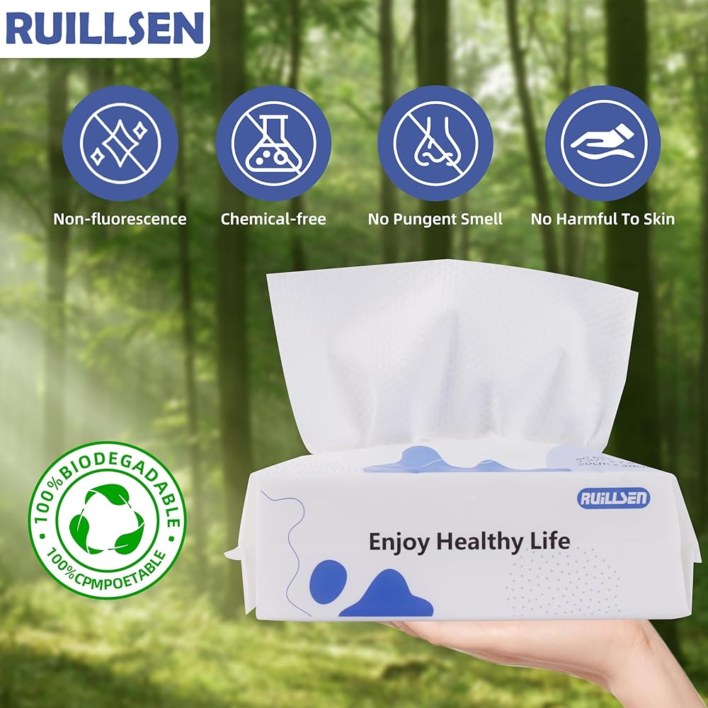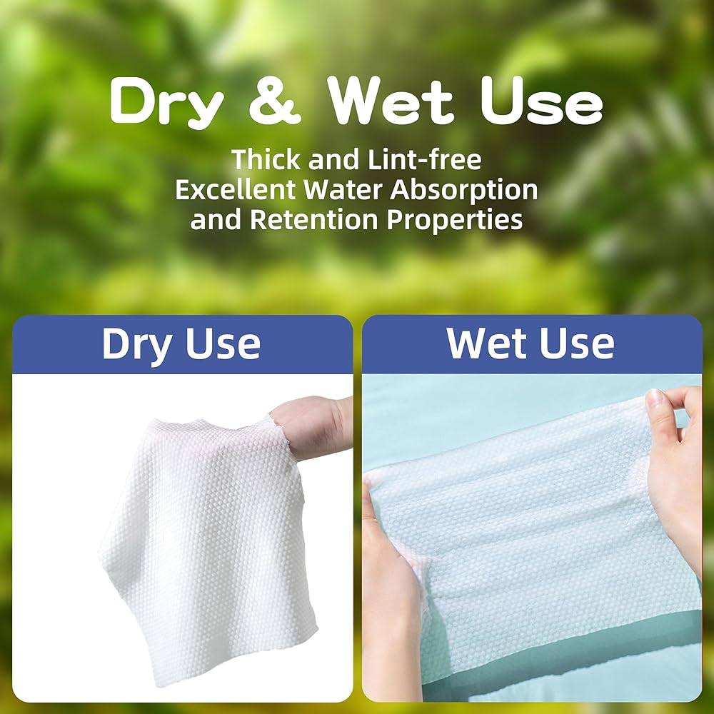 المتانة والقوة: تم تصميم مناديلنا القطنية التي تستخدم لمرة واحدة لتحمل الاستخدام اليومي، مما يوفر متانة وقوة استثنائية. إنها أكثر سمكًا بمرتين من المنتجات المماثلة، مما يضمن أنها لن تتمزق أو تتفكك، حتى عندما تكون مبللة. وهذا يجعلها مثالية لمهام التنظيف المختلفة دون المساس بجودتها.