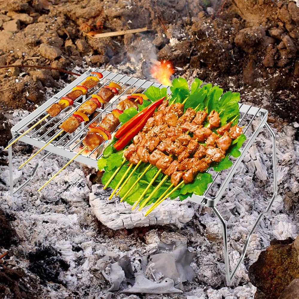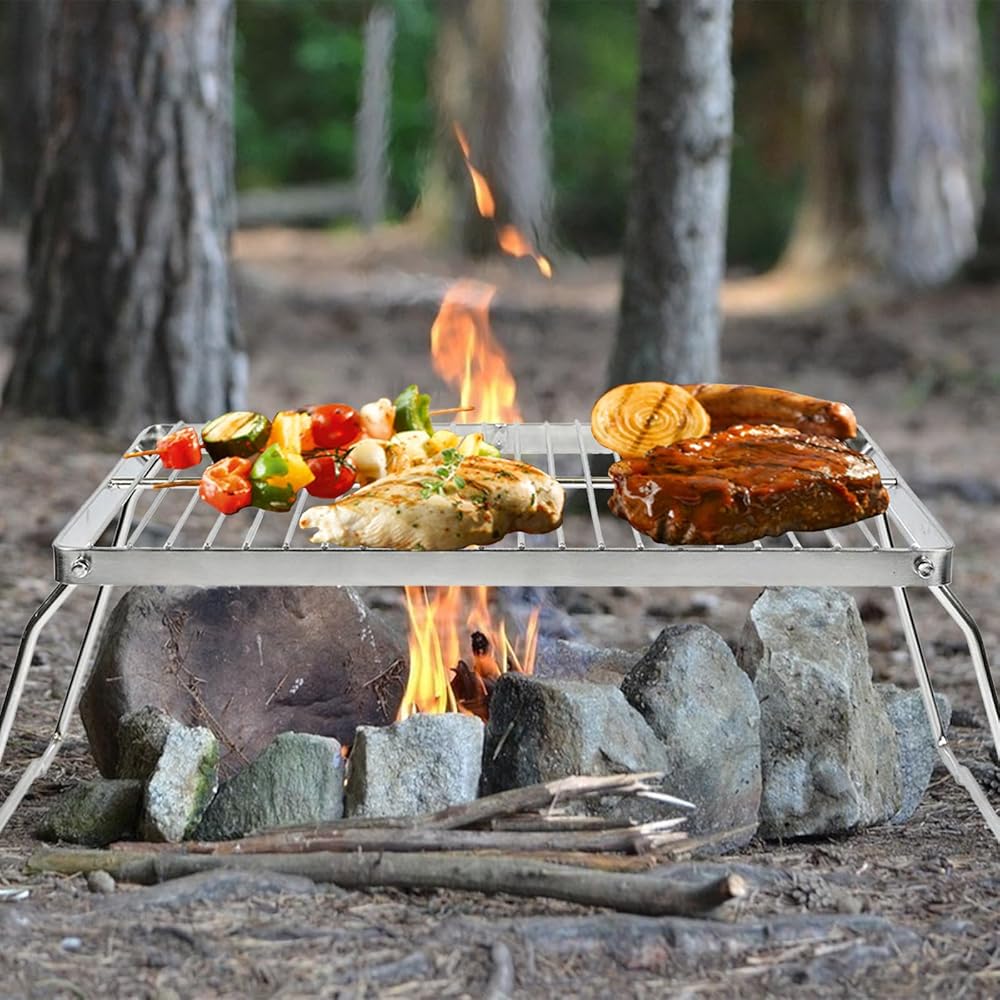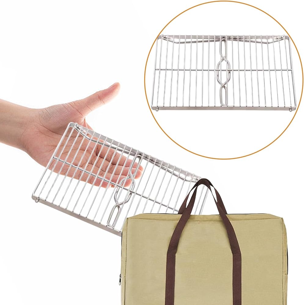 304 Stainless Steel Grill Grate-Foldable Campfire Grill-Campfire Grill Grate Over Fire Pit-With Carrying Bag-Fire Pit Grill for Hiking Trips