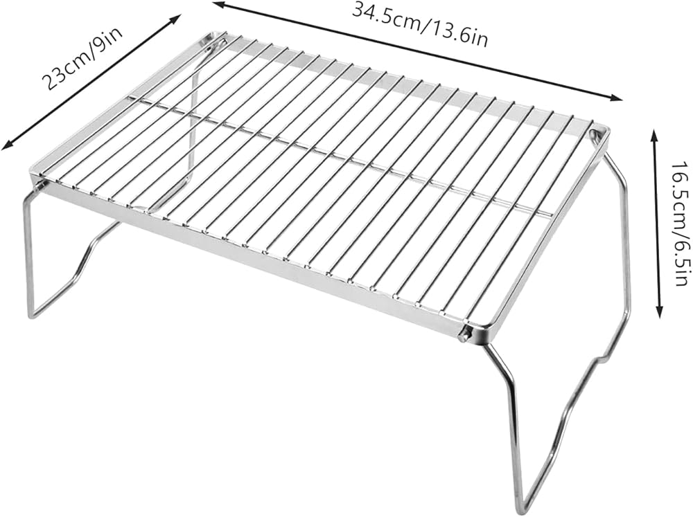 • 【Material and size】The campfire grill is made of 304 food-grade stainless steel and the legs are made of 201 stainless steel,which helps the grill resist oxidation and corrosion.Measuring 13.6*9*6.5 inches,it is a popular size for most people.