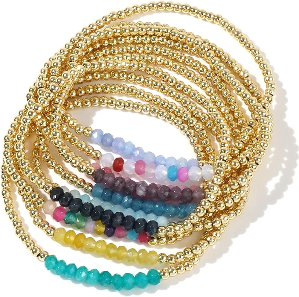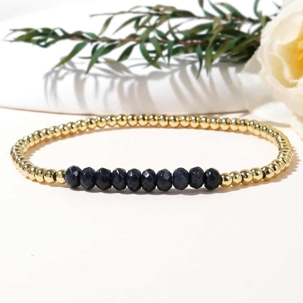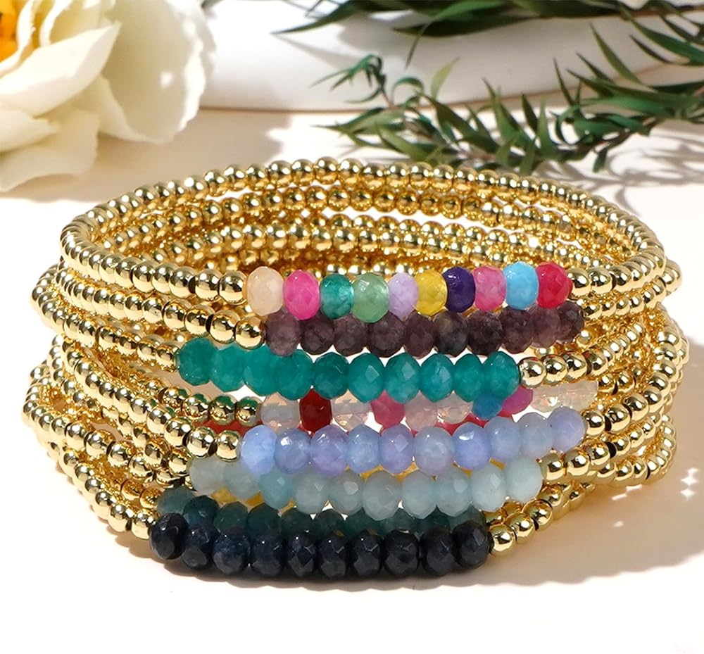 Lovely dainty gold beaded gemstone bracelet, stretchable handmade beaded hand band, sparkly cute healing stone beads, with a pretty personalized eye-catching color, a great accessory for most occasions.