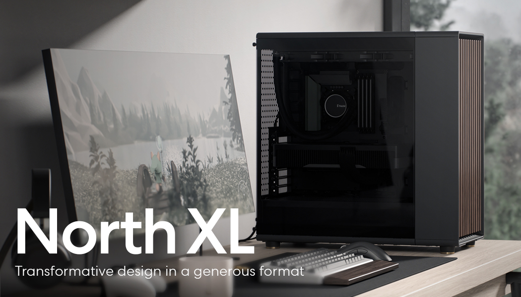 North XL offers a transformative take on the gaming PC case in a generous form factor. With fine-patterned mesh ventilation and an open front featuring FSC-certified walnut or oak panels, the design of North XL makes it a stylish addition to any living space while helping components stay cool. The design is complemented by sleek brass or steel details and an integrated tab for easy access to the top of the case. Inside, it boasts a spacious, flexible, and intuitive interior layout so you can make the most of your building aspirations and gaming experience.