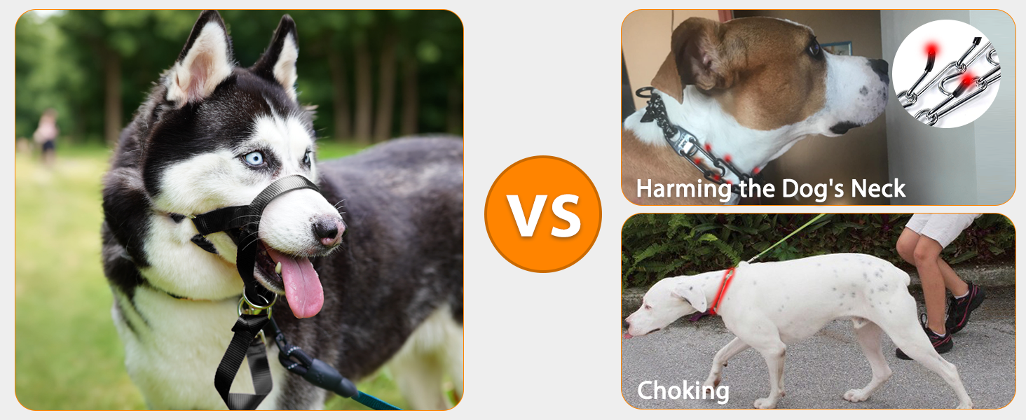 تدريب لطيف: التصميم الفريد لحزام الرأس يسمح بالتحكم اللطيف، مما يمنع السحب مع الحفاظ على راحة كلبك وراحته. يعمل طوق الكلب المانع للسحب مثل رسن الحصان؛ سوف يتبع الجسم حيث يذهب الأنف. يتم الضغط على الجزء الخلفي من الرقبة (بدلاً من الأمام) مما يقلل من رغبة كلبك في التقدم للأمام