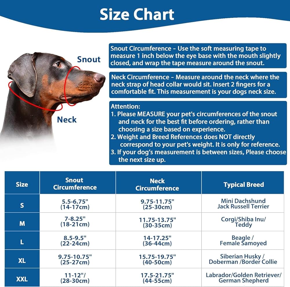 مناسب للسلالات الصغيرة: لن يناسب حزام الخطم الكلاب ذات الخطم القصير مثل كلاب البلدغ. نوصي بشدة بقياس أنف كلبك قبل الشراء، ويمكنك العثور على دليل المقاسات الخاص بنا من الصورة والوصف. لأية استفسارات عن المقاس، تواصل مع قياسات كلبك، وسنساعدك في اختيار الحجم المثالي