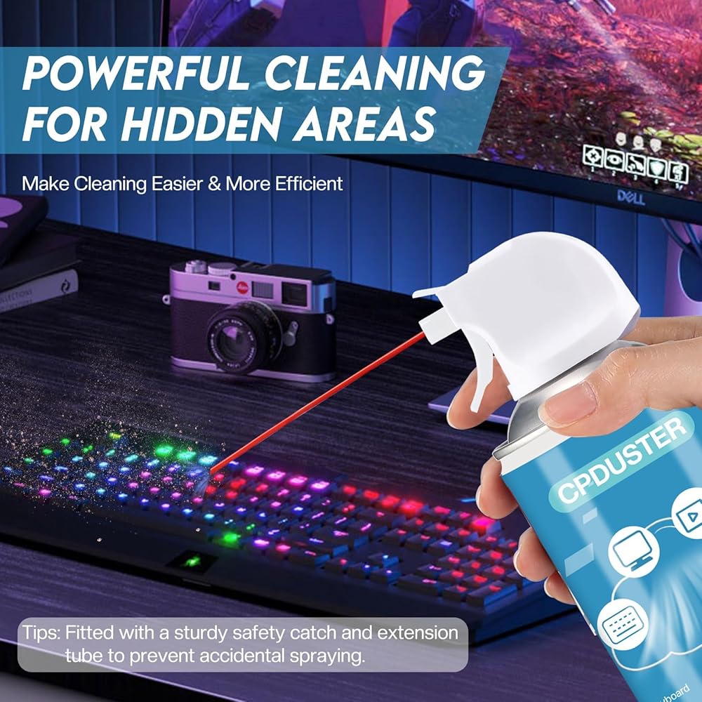 MULTIPURPOSE: CPDUSTER keyboard cleaner air spray can be used to dust clean a variety of electronic devices such as keyboard, computer, phone, macbook ps5 and laptop. air duster for pc sprayer are also ideal for cleaning dust from desk surfaces.