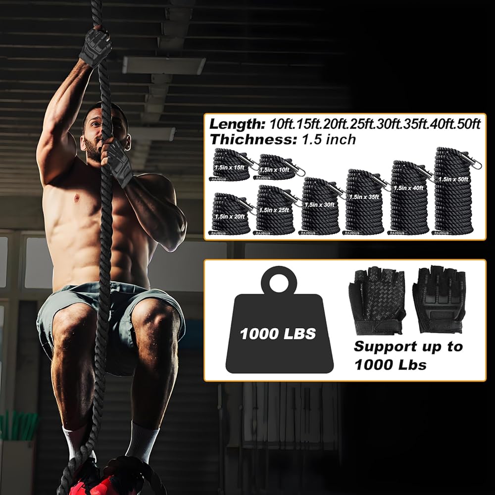 【يتم تركيبه في أي مكان】 يمكنك ربط حبل تسلق اللياقة البدنية بأي نقطة ثابتة لتمارين تسلق الصخور وتدريبات القوة في الداخل أو الخارج. قم بتثبيت حبل التسلق على الحائط أو السقف باستخدام دعامة حبل التسلق على شكل حرف U (غير متضمنة)، أو أدخل الحبل في الحلقة المعدنية لإنشاء حلقة حبل على أي شعاع أو فرع شجرة.