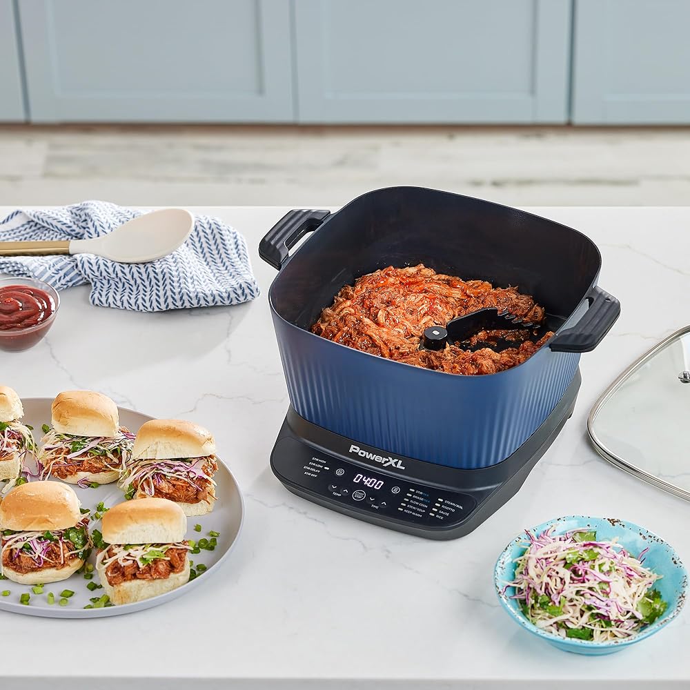 HANDS-FREE MEALS WITH 360° AUTOMATIC PADDLE—60% FASTER* With our Stirmax™ Technology, the 360° Automatic Paddle and 9 Pre-Programmed Presets stir & shred almost any meal from soups, sauces, and stews to perfectly cooked risotto. Or use the Stirmax™ & Braisemax Smart Presets to sauté, sear, & brown food first before simmering. The Deluxe Stirmax™ multi-cooker is coated with 8x more durable blue diamond ceramic and equipped with skillet and wire rack accessories for versatile cooking. No matter what meal you choose, the Stirmax™ Deluxe Multi-Cooker does the work for you so you have more time with family and friends to enjoy delicious and flavorful meals, hands—free, and hassle—free, that practically cook themselves.