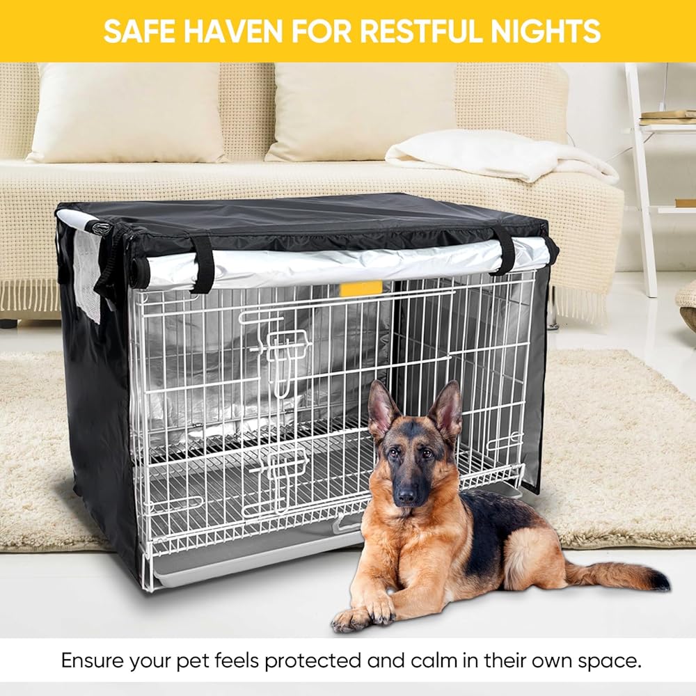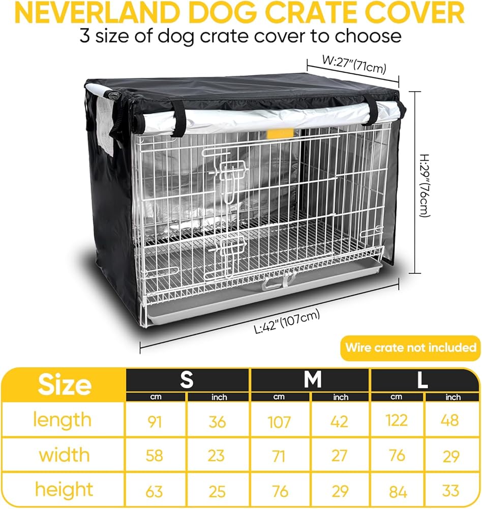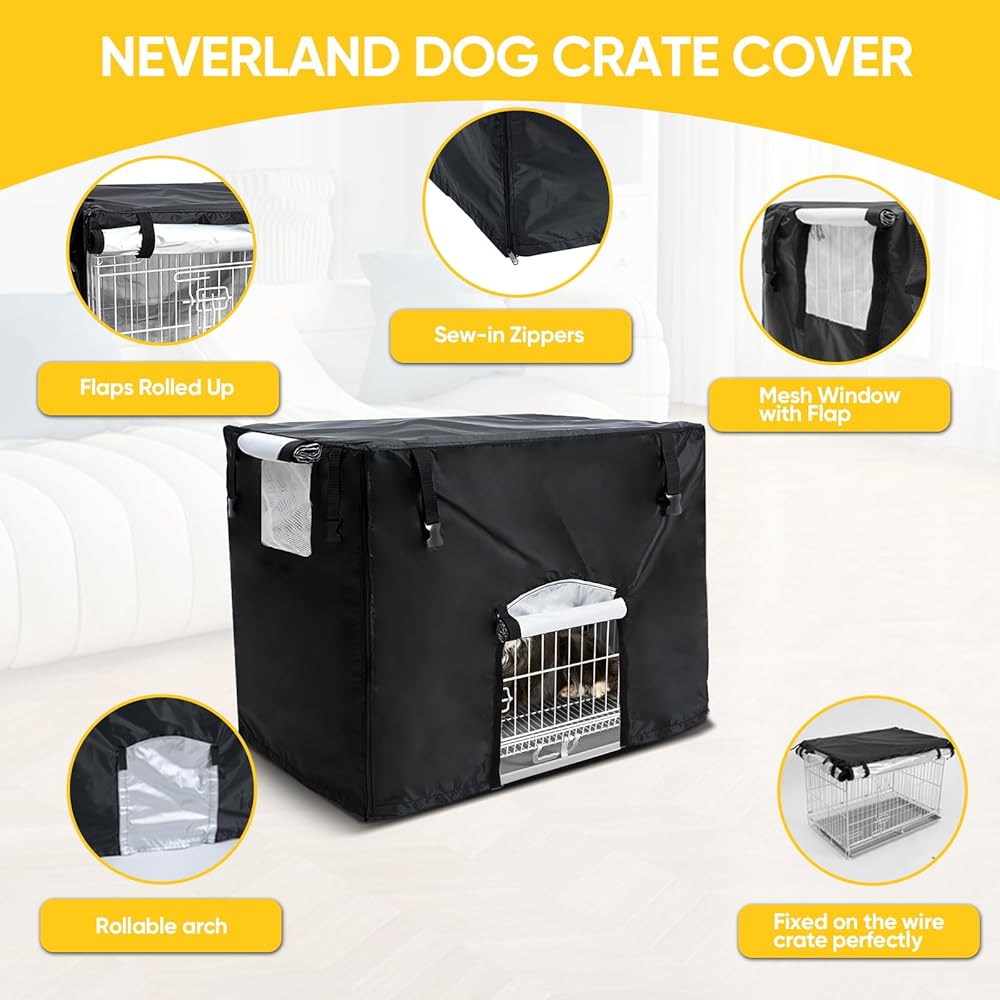 سهلة التركيب مع حماية كبيرة: أغطية أقفاص الكلاب التي صممها فريق الخبراء لدينا، أغطية أقفاص الكلاب NEVERLAMD سهلة جدًا في الارتداء والخلع. مع الغطاء الموجود على القفص، لا داعي للقلق بشأن أشعة الشمس والمطر والغبار والضباب والأوساخ وما إلى ذلك.