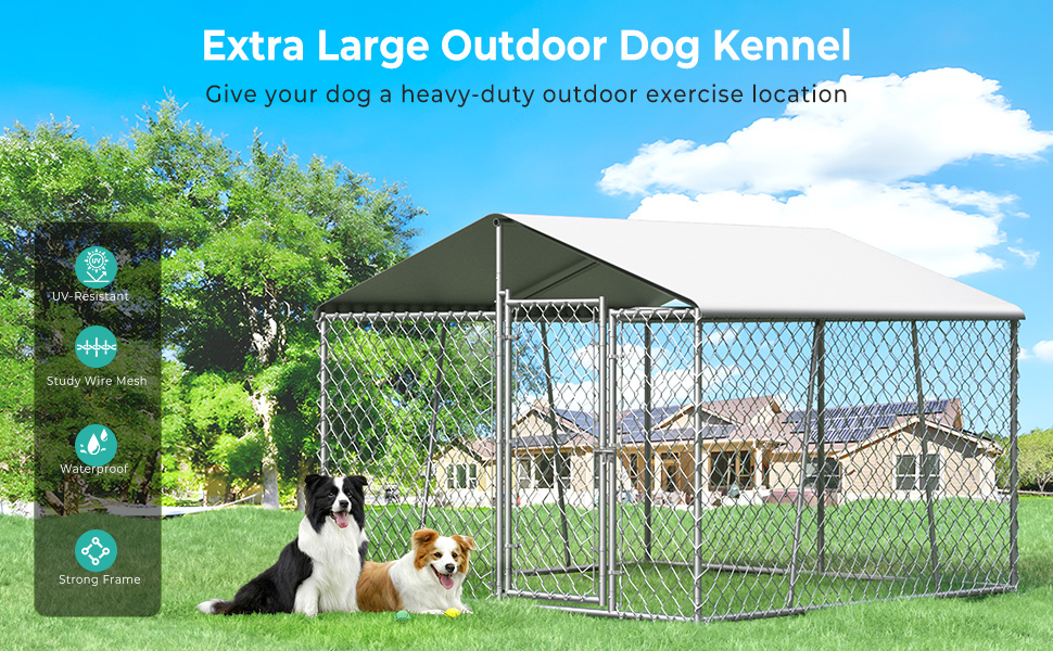【Spacious Play Area】With ample room for exercise, this outdoor dog kennel allows you to create a fun, customized space for your dog to relax, run, and play