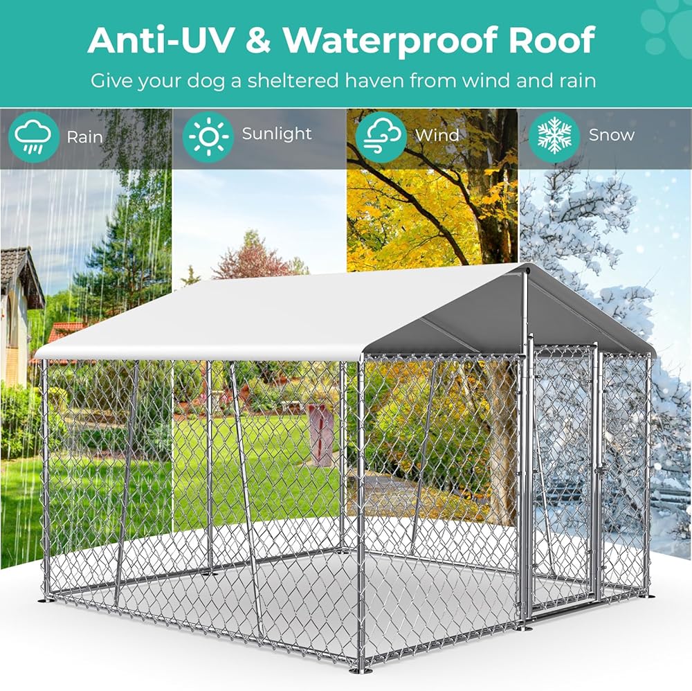 【Weatherproof Roof】The UV-resistant, waterproof PE cover ensures your dog stays dry in the rain and cool in the sun, providing year-round comfort