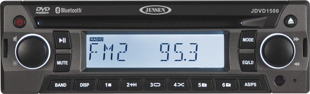 Watch all your favorite movies and enjoy mobile audio entertainment with JENSEN's next generation 12 Volt DVD player. The JDVD1500 12 Volt DVD Player sports a standard DIN size chassis making it compact and capable of fitting in any convenient location. In addition to being a fully functional DVD player, the JDVD1500 also allows for AM/FM entertainment and Bluetooth connectivity from a Bluetooth enabled source.