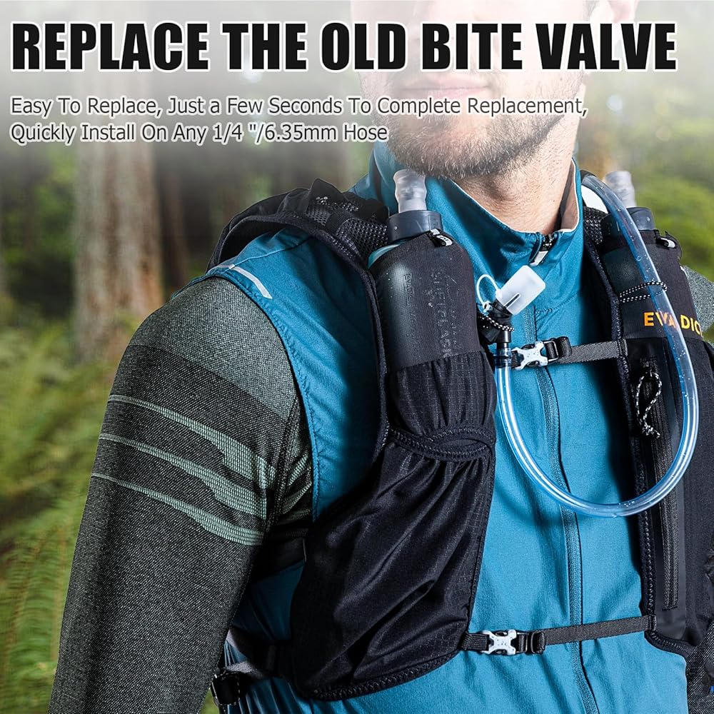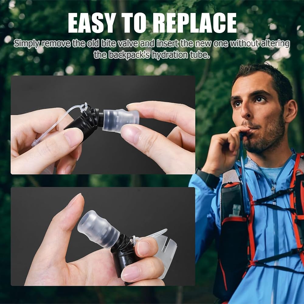 Easy to Replace: Bite valves are very easy to replace, without the need to change the backpack's water pipe. Simply remove the old bite valve and insert a new bite valve to complete the replacement. The package includes 2 x Bite valves and 2 x replacement nozzles, which can be stored in your backpack and replaced in just a few seconds when needed.