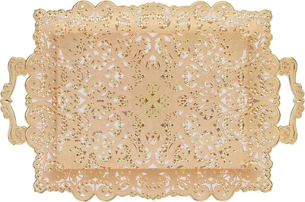• SIZE&MATERIAL: Length: 16.92 inches (43 cm). Width: 11.02 inches (28 cm). Height:1 inch Weight:1.40 Pounds (635Grams). Sturdy and durable large rectangular tray made of premium zamak with elegant embroidery.