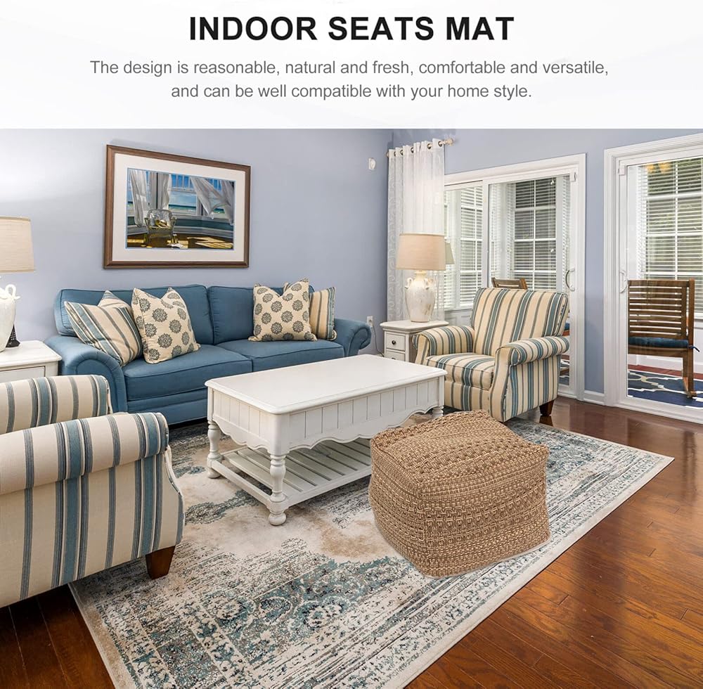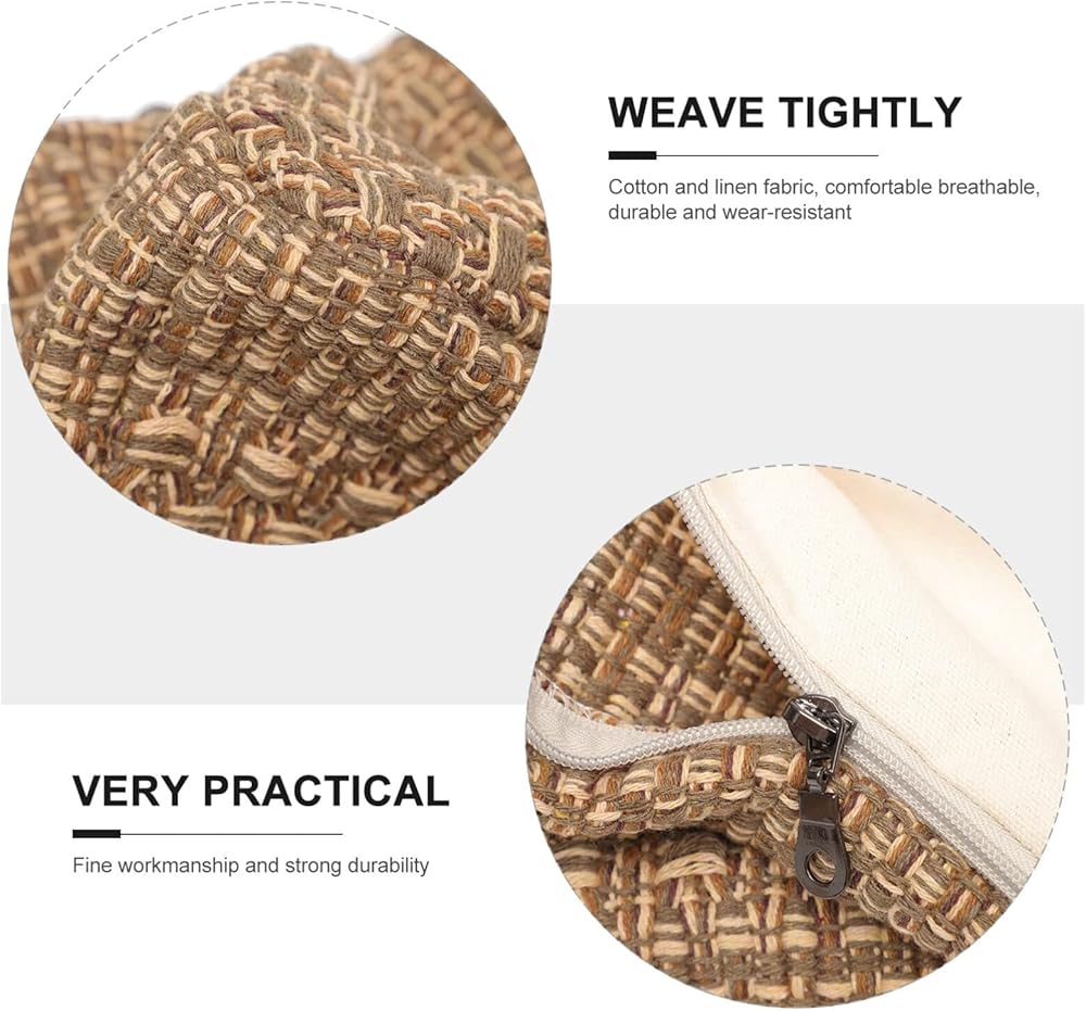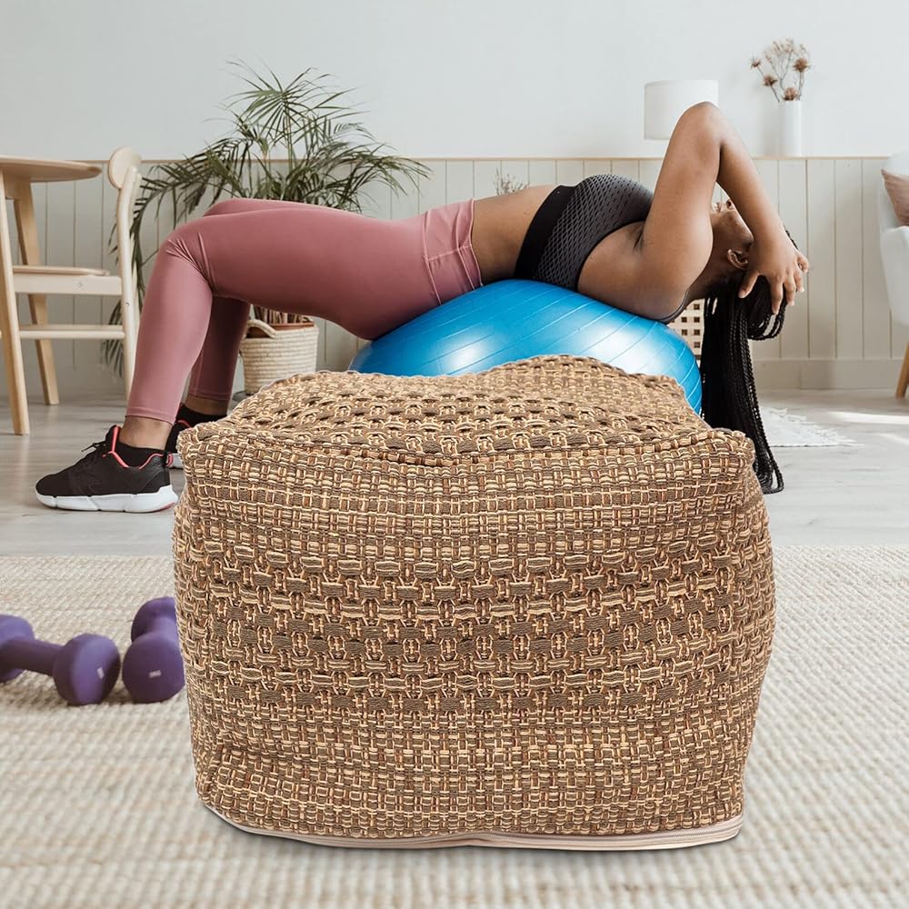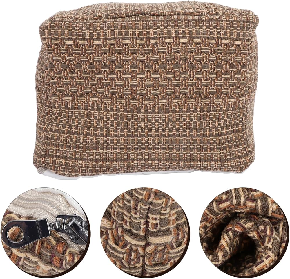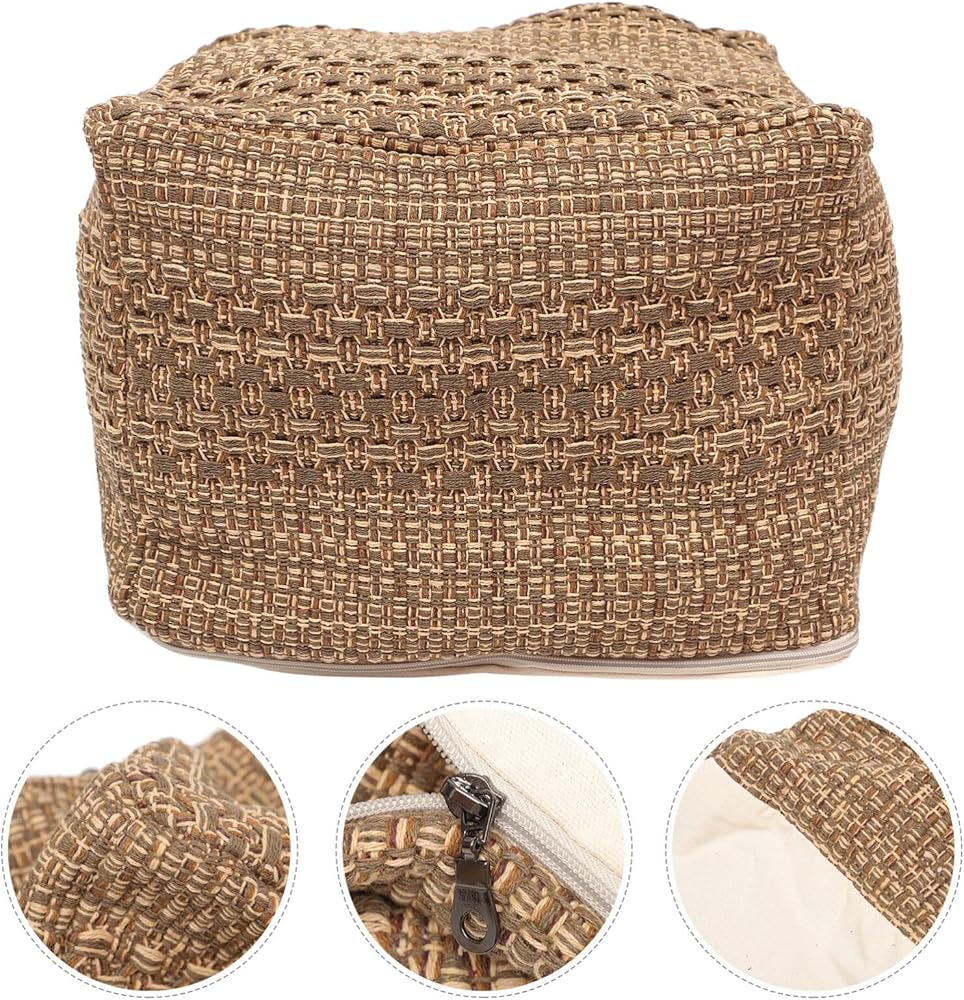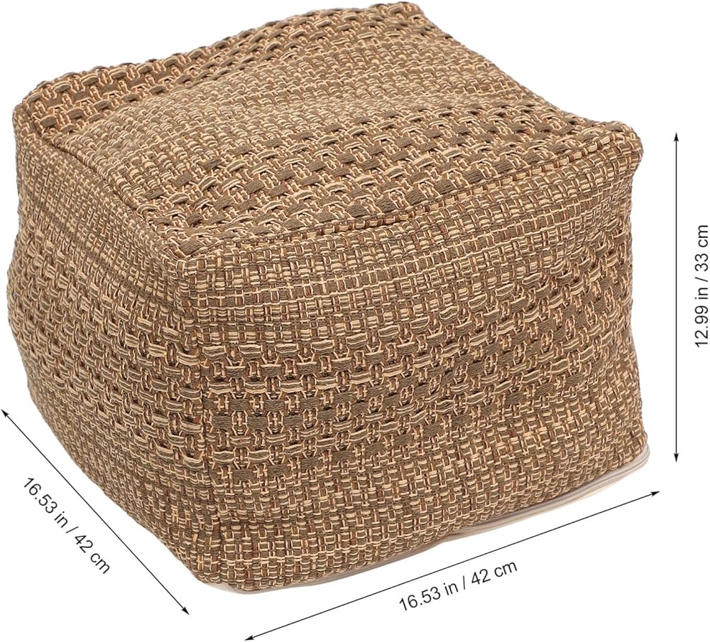غطاء Hemoton Pouf غير محشو مسند قدم منسوج يدويًا من القطن الناعم المحبوك من القطن والكتان مسند قدم مربع مريح وسادة أرضية غير مملوءة لغرفة المعيشة وكرسي منزلي بني