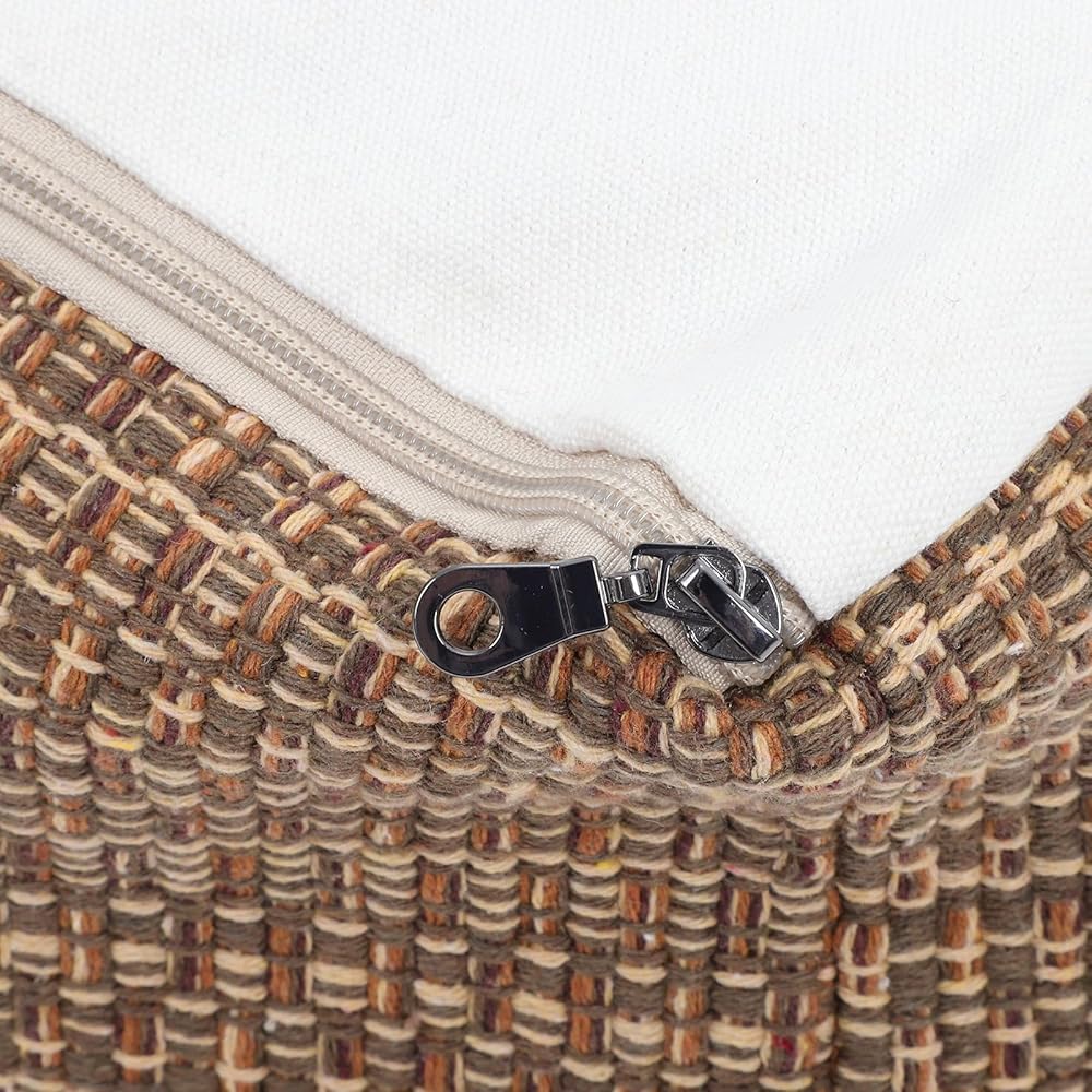 • تم تصميم غطاء الوسادة غير المحشو باللون البني الصلب والحرفية المنسوجة يدويًا