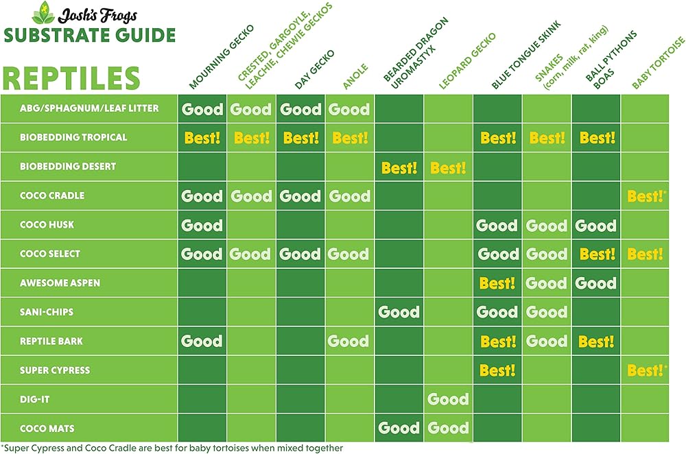 المزيد من المواد الفريدة من ضفادع جوش! نحن نقدم أيضًا Dig-It، وABG Mix، وBioBedding، وCoco Cradle، ووسائط الحضانة، وأغطية الحشرات المغذية، واللحاء الممزق المتنوع مثل Aspen، وCypress، وPine، والمزيد!