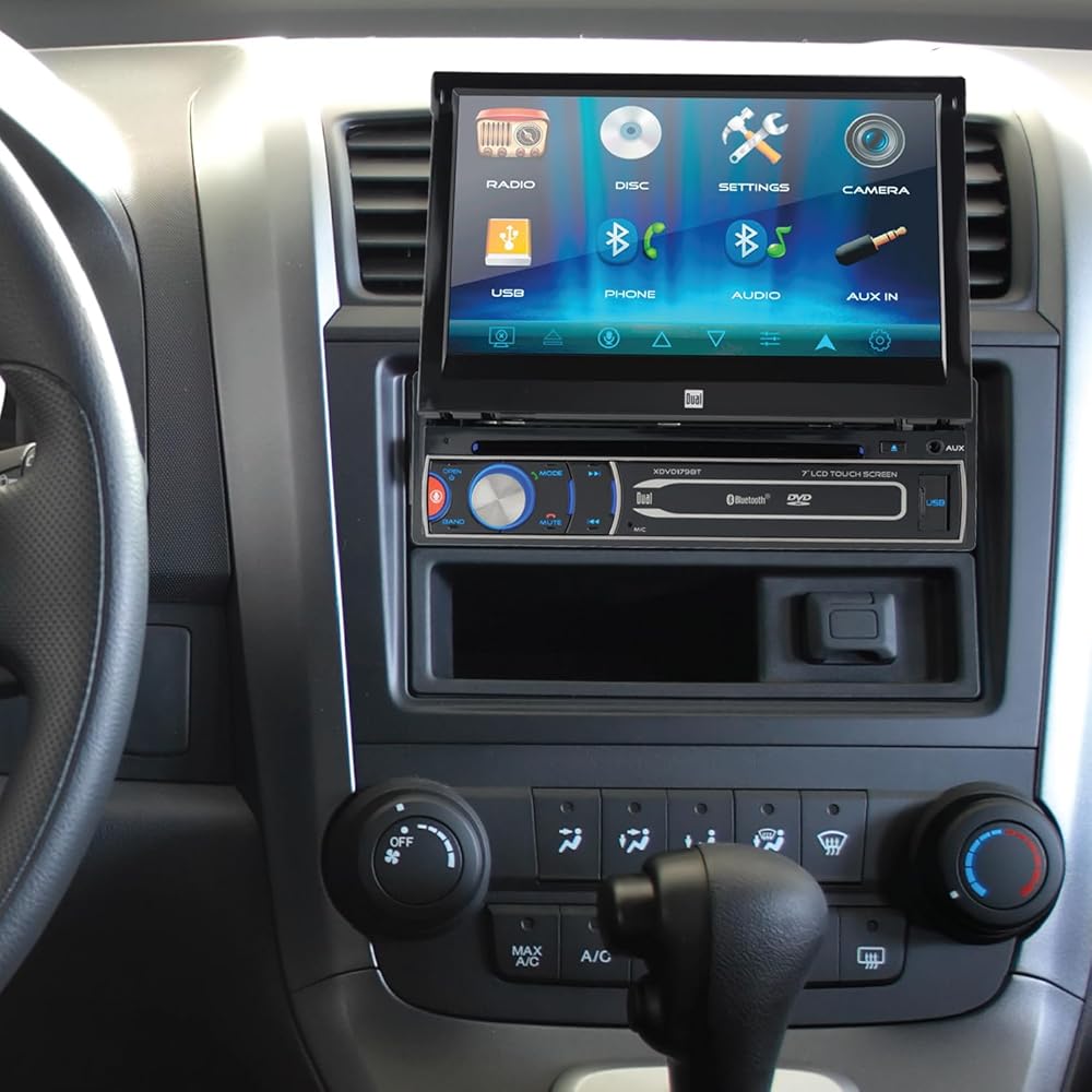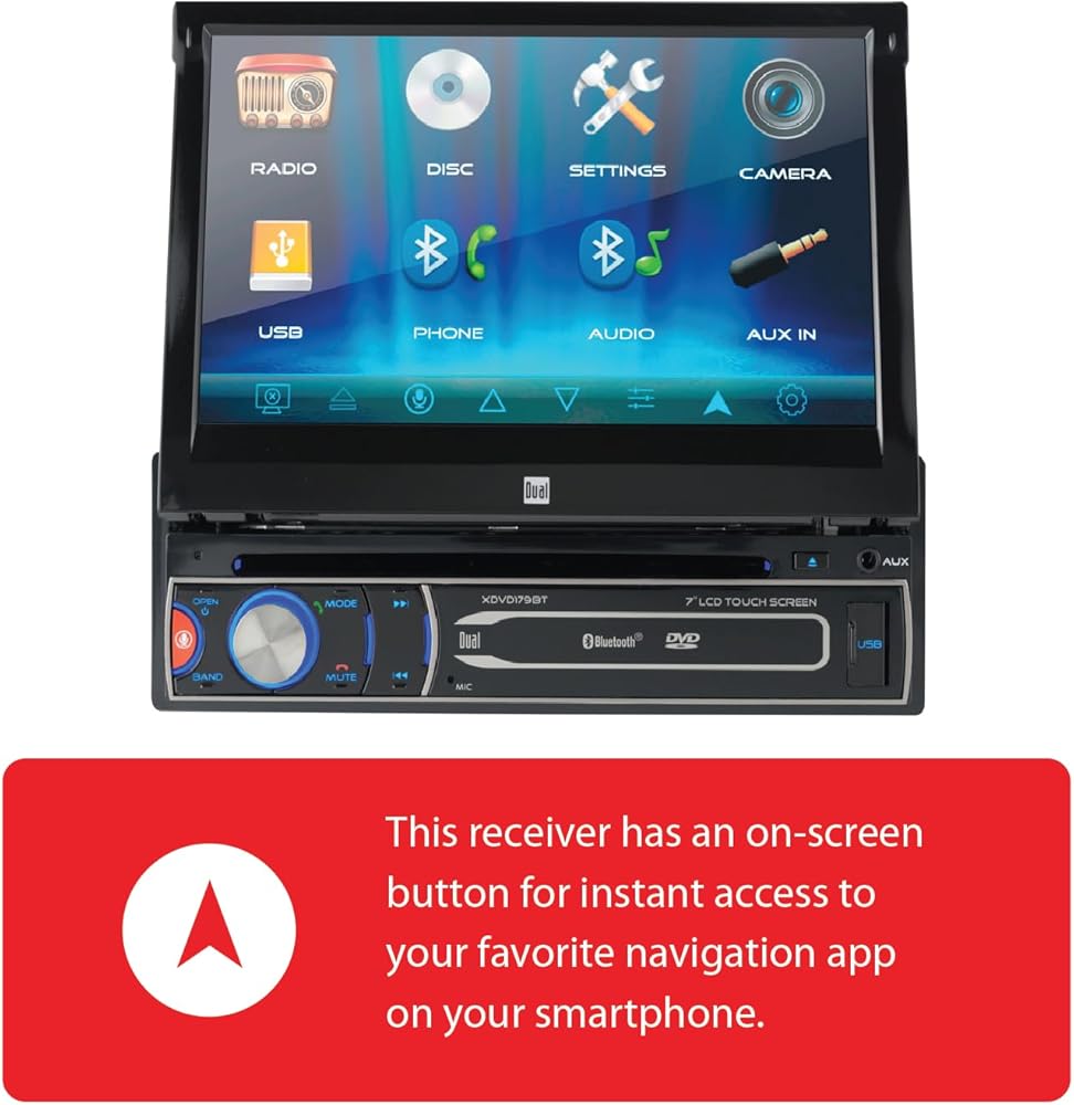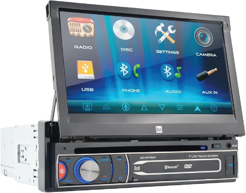 Dual Electronics XDVD179BT 7 بوصة بمحرك قابل للطي LED شاشة تعمل باللمس وراديو ستيريو للسيارة DIN واحد | سي دي/دي في دي | مساعد الضغط والتحدث | إدخال الكاميرا الاحتياطية | بلوتوث | تشغيل وشحن USB
