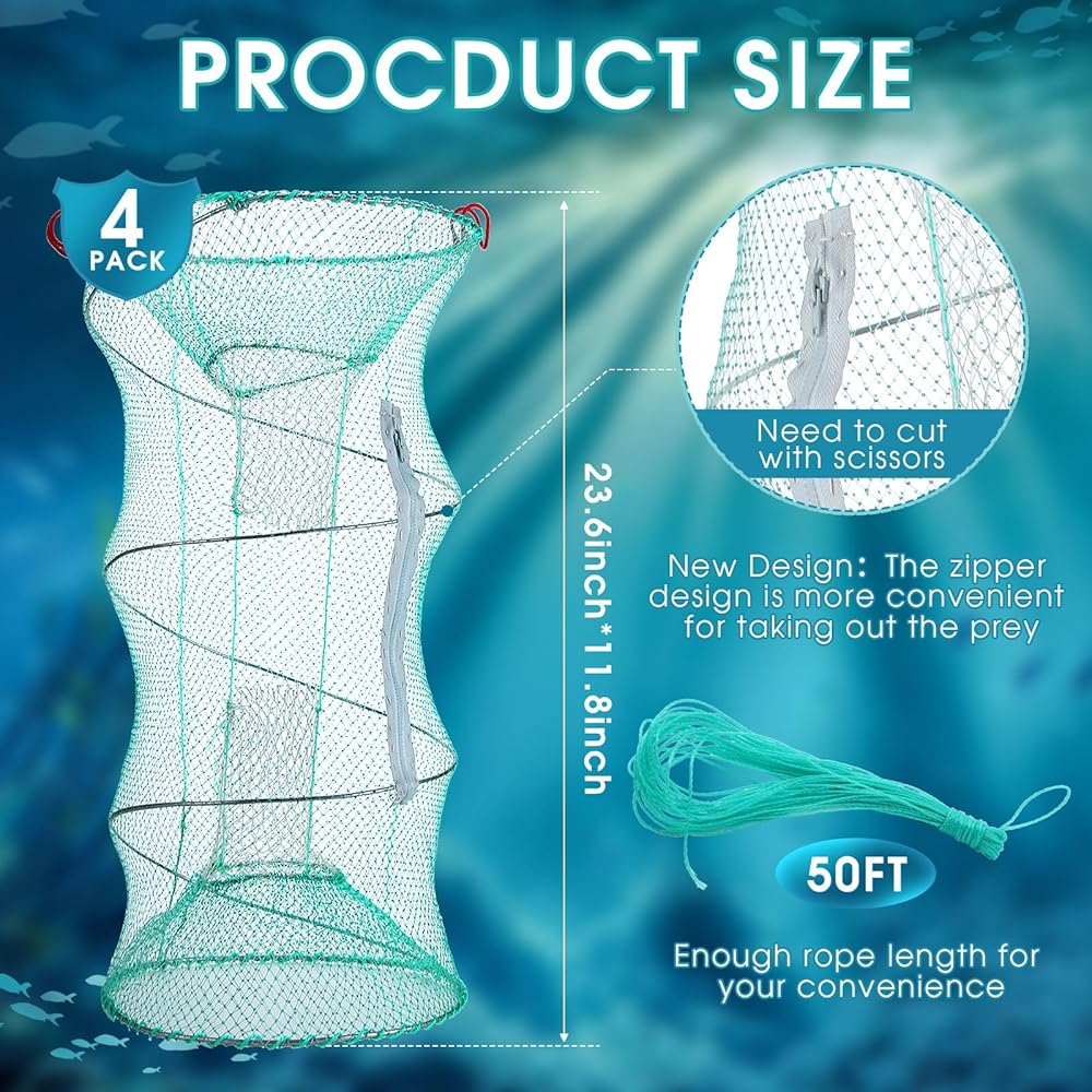 4 قطع للاستبدال: سوف تحصل على 4 قطع من مصائد الأسماك لصيد الأسماك مع 4 حبال خيوط يبلغ طولها حوالي 16.4 ياردة/ 15 متر لكل منها؛ منتجات السلطعون هذه مريحة، لا تحتاج إلى تركيب، ومناسبة لمعظم سيناريوهات الصيد
