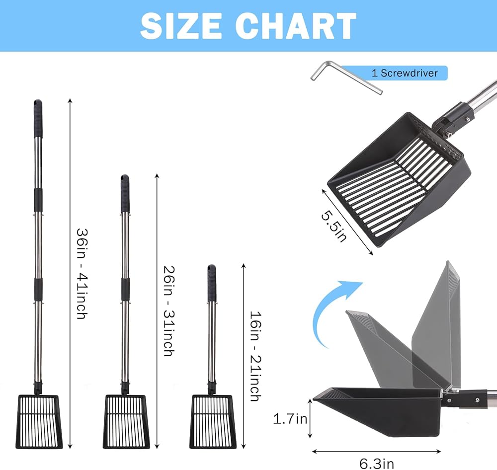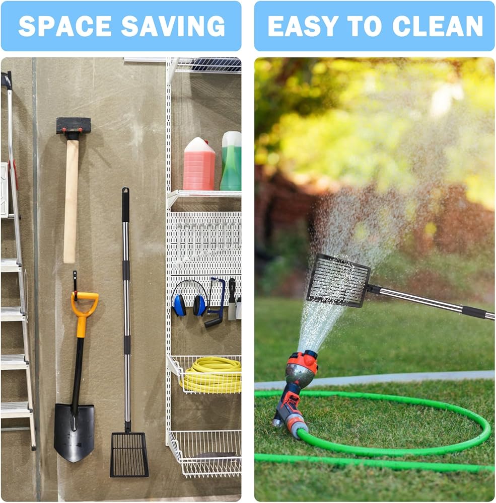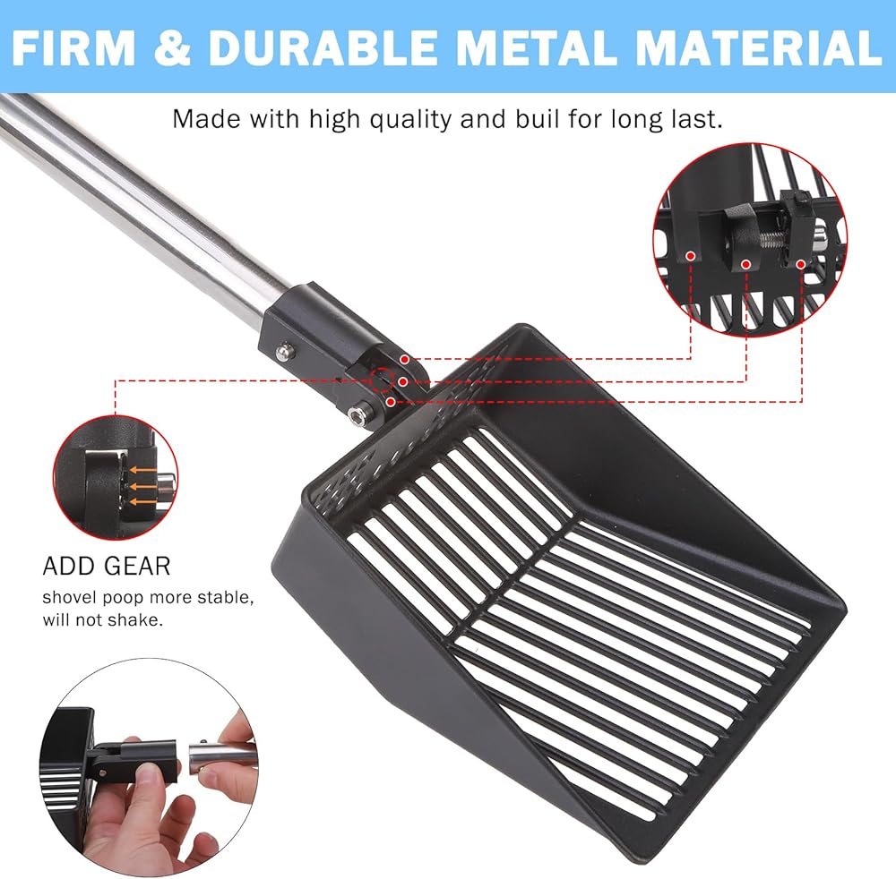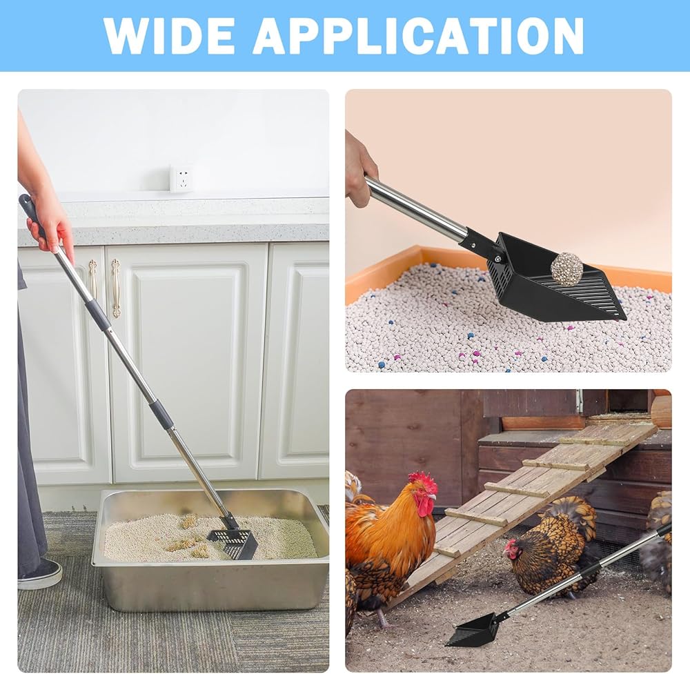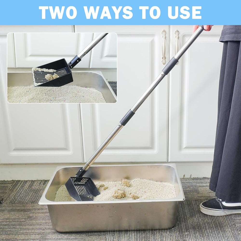مغرفة فضلات القطط بمقبض طويل من سينيريال، مغرفة فضلات معدنية/مغرفة فضلات الدجاج، قابلة للتعديل حتى 40 بوصة لا تحتاج إلى ثني الألومنيوم مجرفة عميقة لغربلة البراز، منخل فضلات القطط لصندوق الفضلات، متين