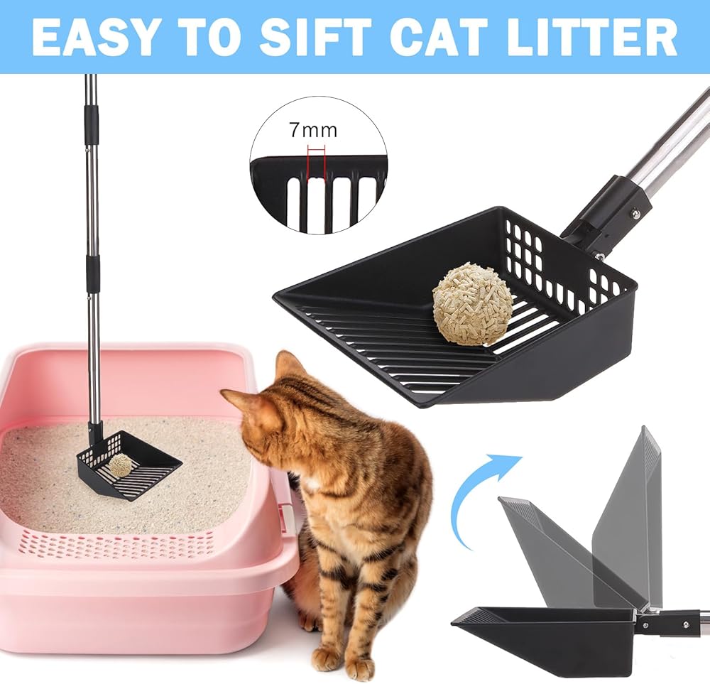 • تصميم فريد: تم تصميم مغرفة فضلات القطط هذه ذات المقبض الطويل خصيصًا للعظام الكسولة. لا تحتاج إلى ثني ظهرك في كل مرة تقوم فيها بتنظيف صندوق الفضلات. قف أو اجلس على كرسي وقم بكل العمل بسهولة، مما ينقذ ظهرك من الألم. إذا كان لديك صندوق فضلات بغطاء، فلن تضطر إلى إزالة الغطاء كلما قمت بتنظيفه.