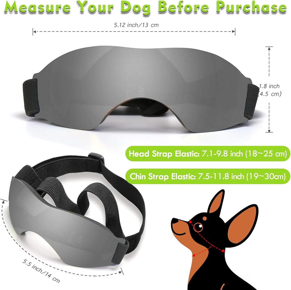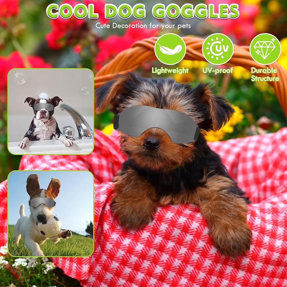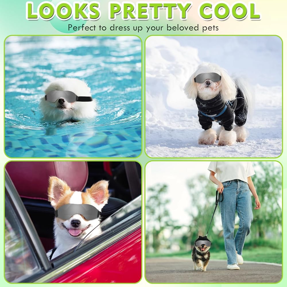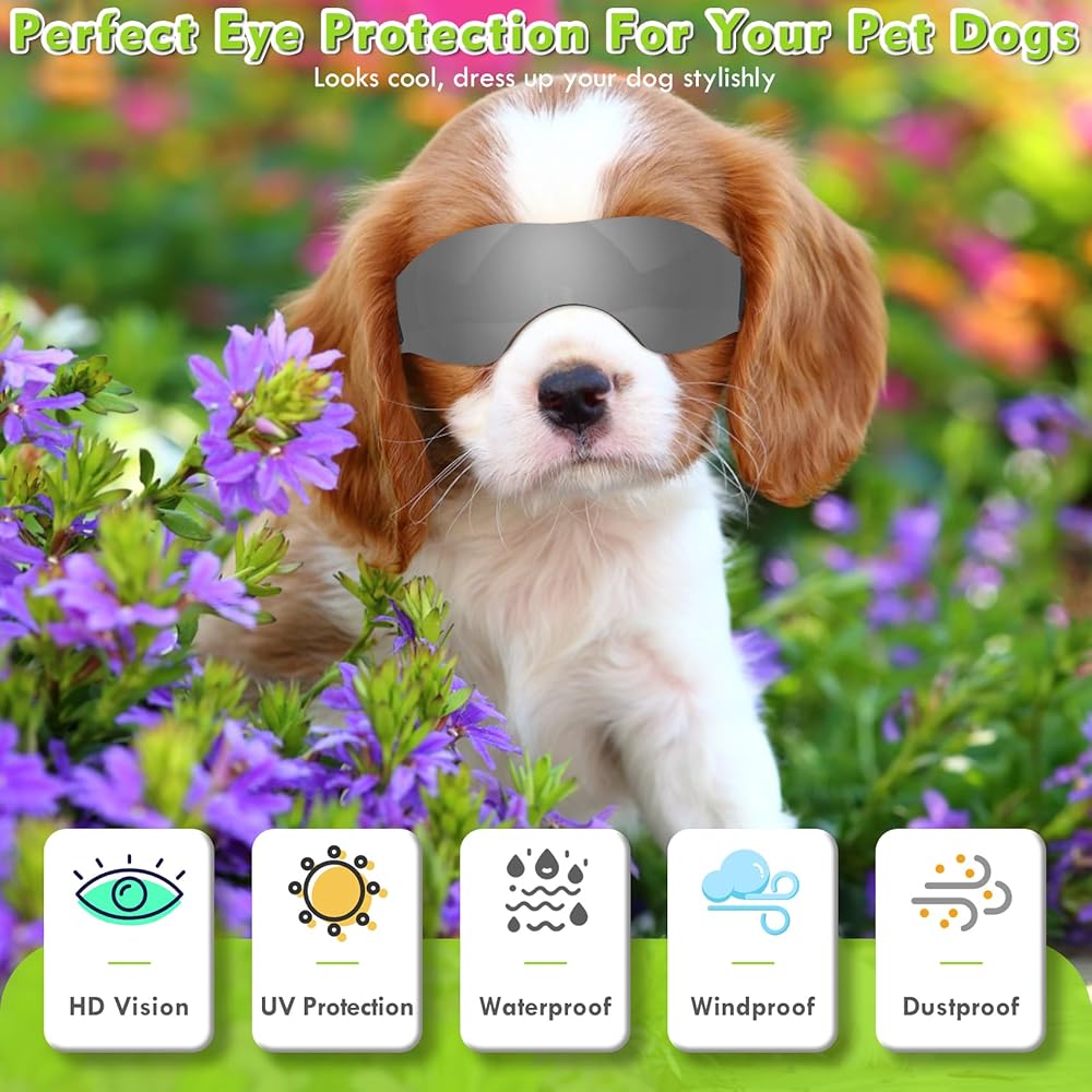 نظارات شمسية للكلاب الصغيرة، نظارات حماية من الأشعة فوق البنفسجية للكلاب الصغيرة إلى المتوسطة، نظارات مضادة للضباب للحيوانات الأليفة مضادة للرياح للجرو مع حزام قابل للتعديل (أسود)
