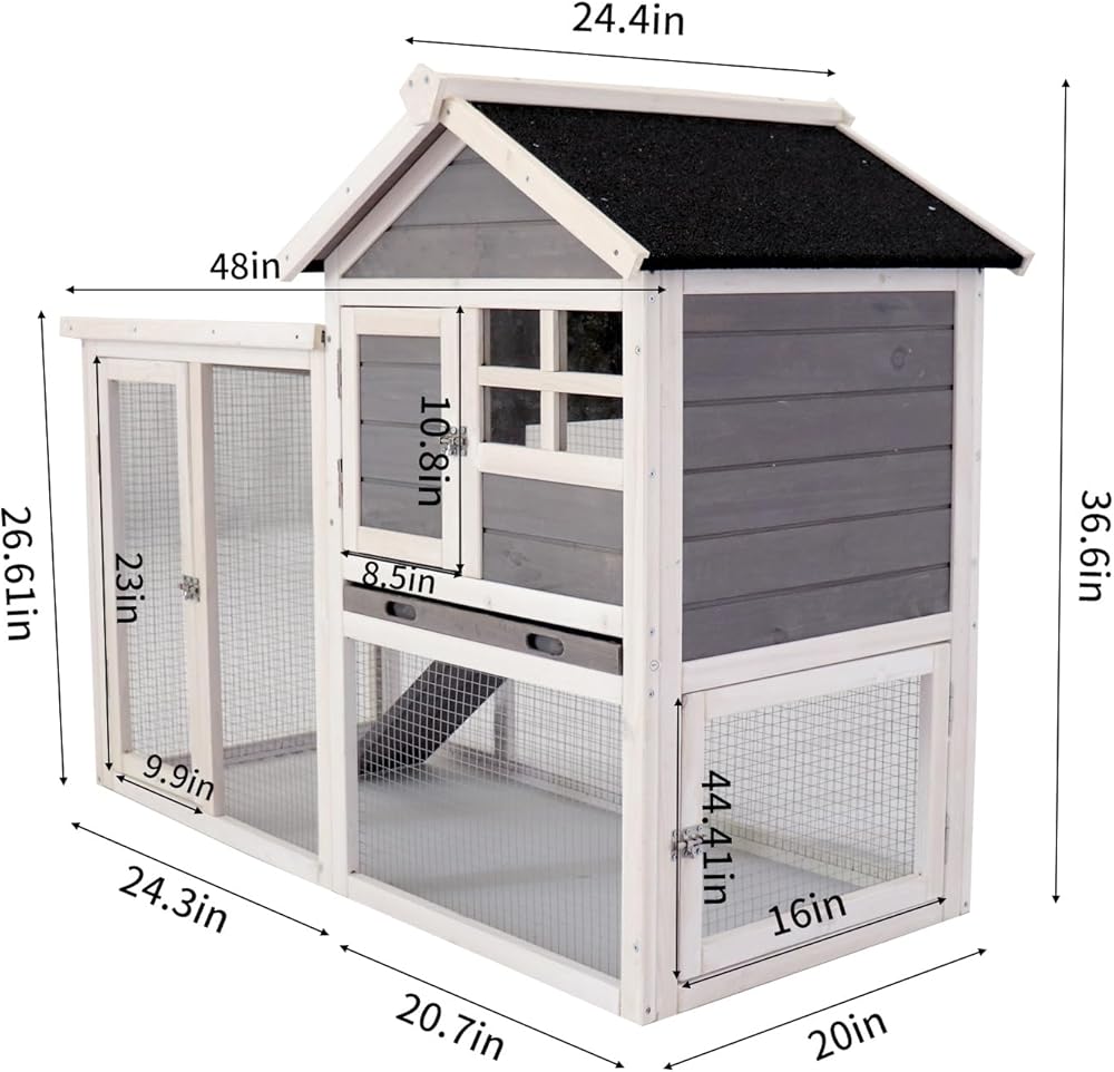 Spacious Design: Rabbit House Chicken Kennels measures 48x24.4x36.8 inches, providing ample space for your bunny. Suitable for all ages, it ensures the highest quality and durability.