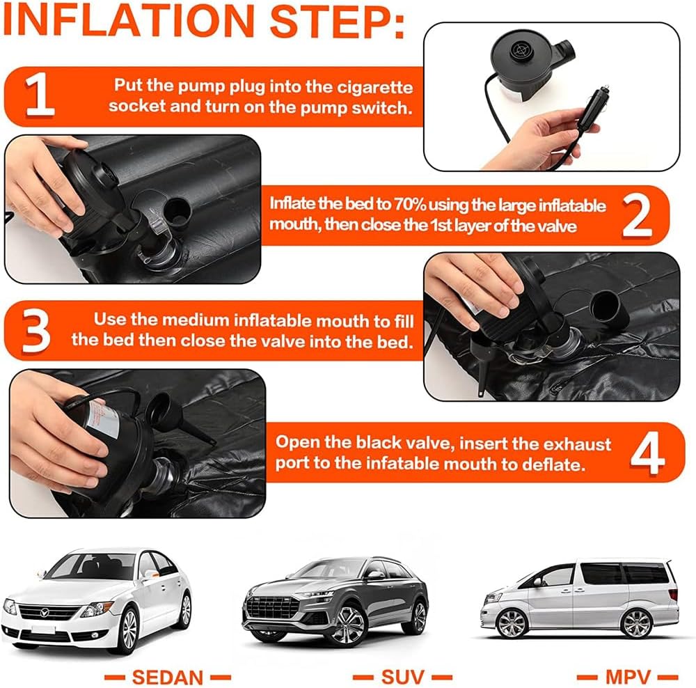 • Car Inflatable Mattress Is Easy To Inflate: Equipped with car power electric pump, Double-layer air nozzle,let The air can only enter,And it can be inflated quickly and easily.
