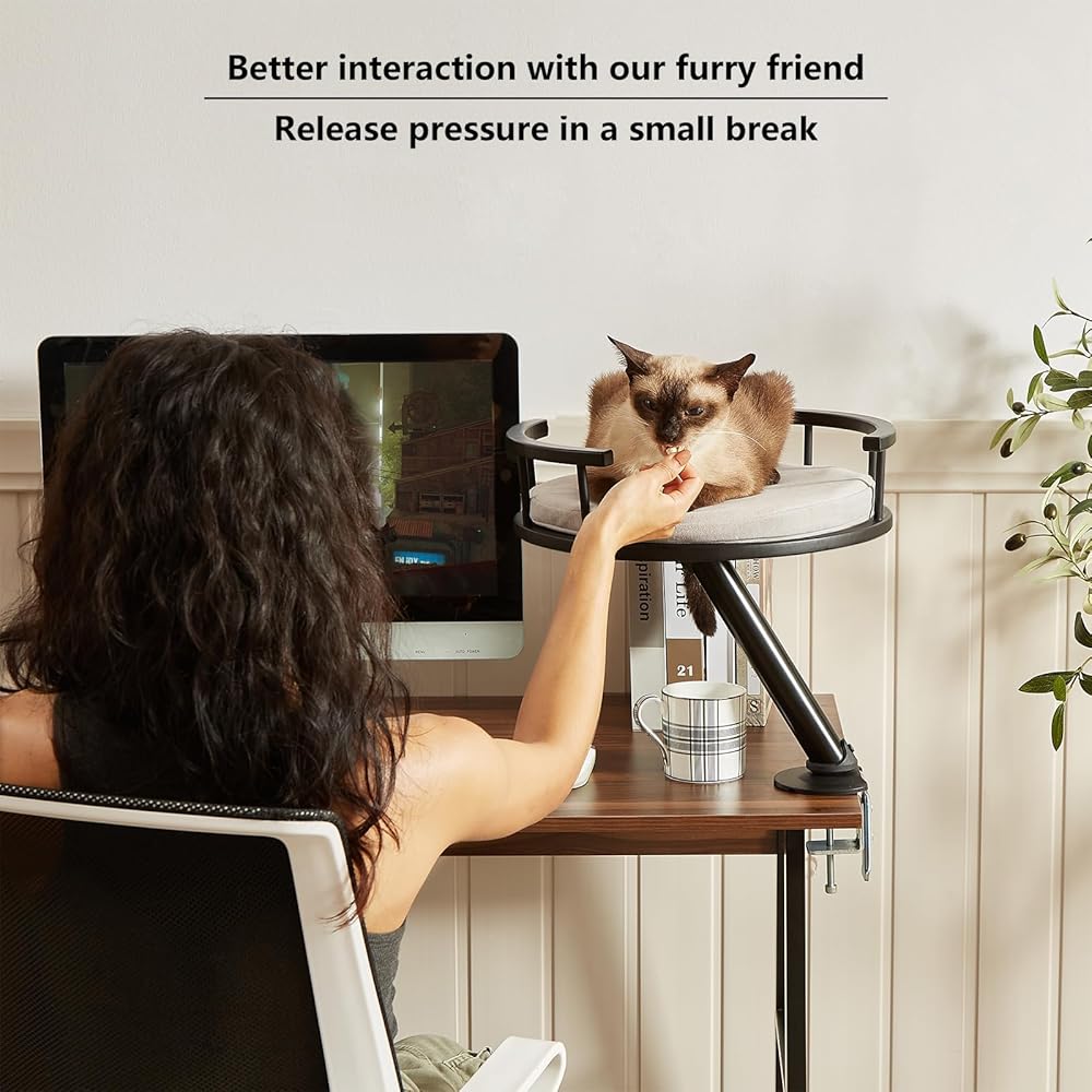 سرير مكتب للقطط - سرير للقطط مثبت على سطح المكتب للمكتب المنزلي، ملحقات عش القطط المرتفعة في الأماكن المغلقة للعمل، ملحق أثاث القطط، مستلزمات القطط الأساسية من WFH (أسود)