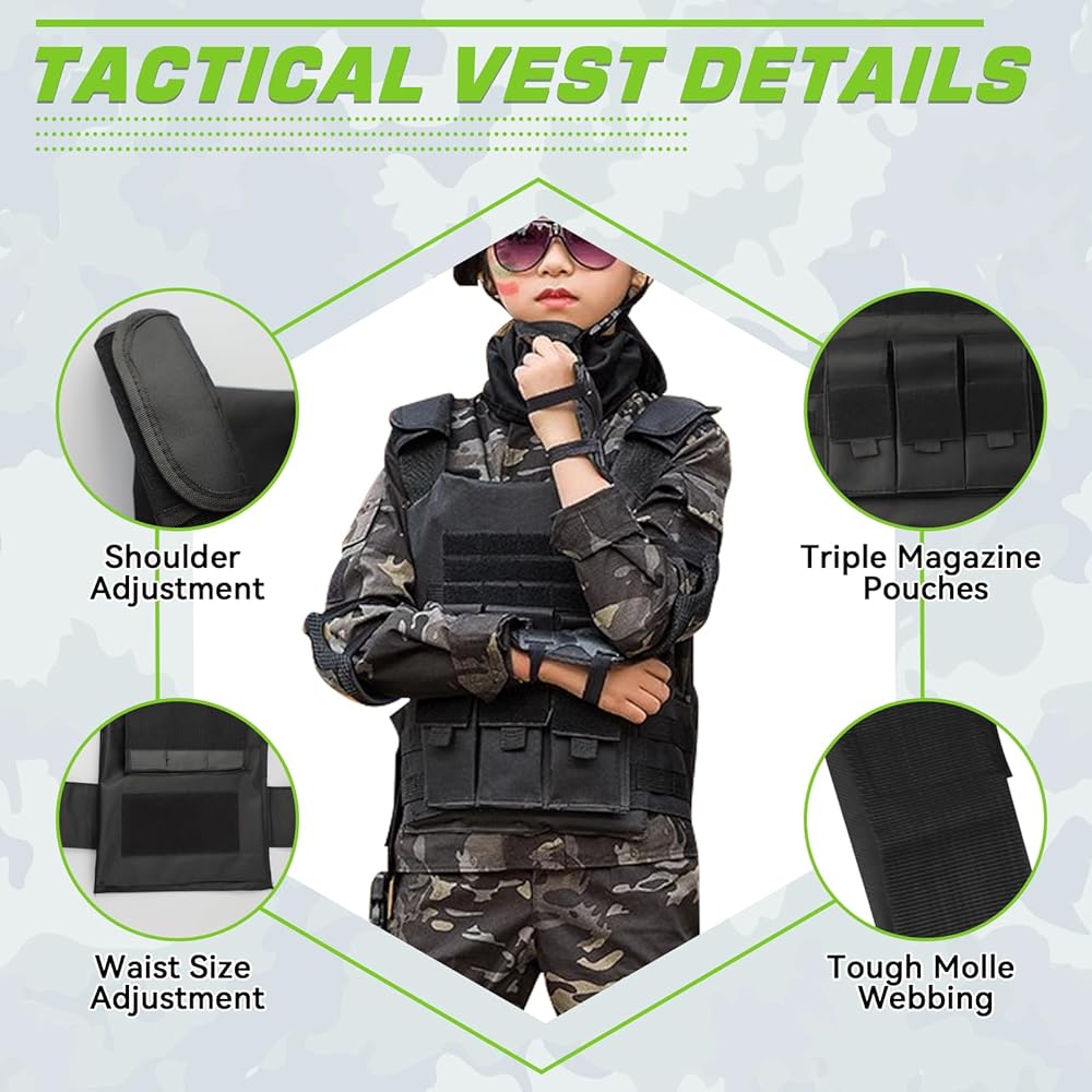 【هدية للأطفال】هذه السترة الخارجية مناسبة جدًا للتدريب التكتيكي، والتخييم، وألعاب الحركة الحية CS، وسيناريوهات كرة الطلاء الأخرى، بالإضافة إلى خيار هدية رائع.