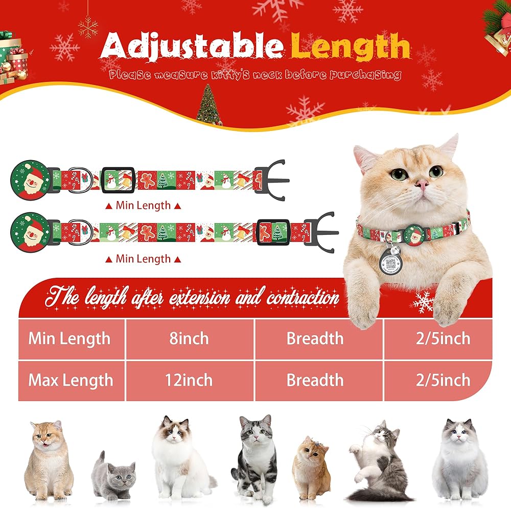 [طوق قابل للتعديل] قابل للتعديل من 8 بوصة إلى 12 بوصة، طوق القطط يناسب أحجام القطط المختلفة. تأتي مع جرس وبطاقة رائعتين، ويمكن ربط حلقة معدنية إضافية بسهولة بسلسلة