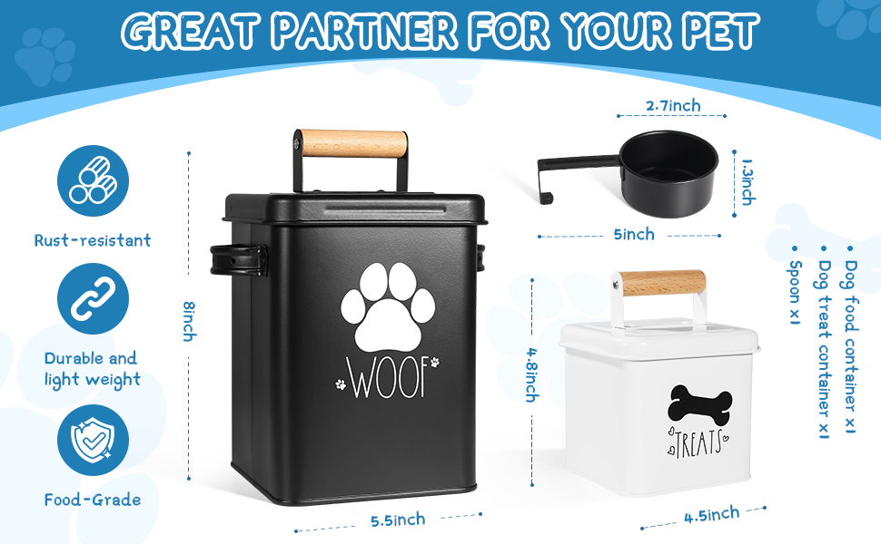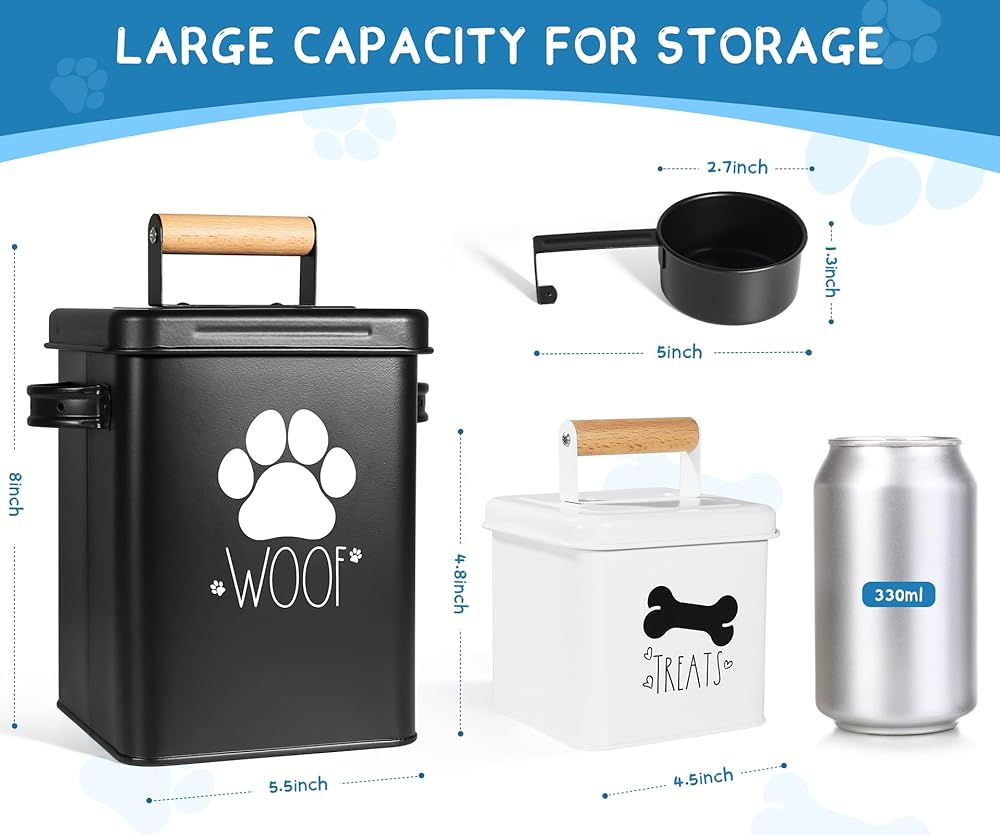 🐶【حافظ على طعام صديقك ذو الفراء طازجًا ومنظمًا】: قم بتخزين طعام كلبك ومكافآته في وعاء طعام الكلاب المعدني الخاص بنا واستمتع براحة الاحتفاظ بكمية أكبر في وقت واحد. توفر هذه البرطمانات بيئة جافة وآمنة، وتمنع الرطوبة من إفساد الطعام بشكل فعال. مع حامل مكافآت الكلاب الخاص بنا، يمكنك التأكد من أن صديقك ذو الفراء يستمتع دائمًا بالطعام الطازج والحلويات، مما يخلق الترقب والإثارة أثناء وقت التغذية.