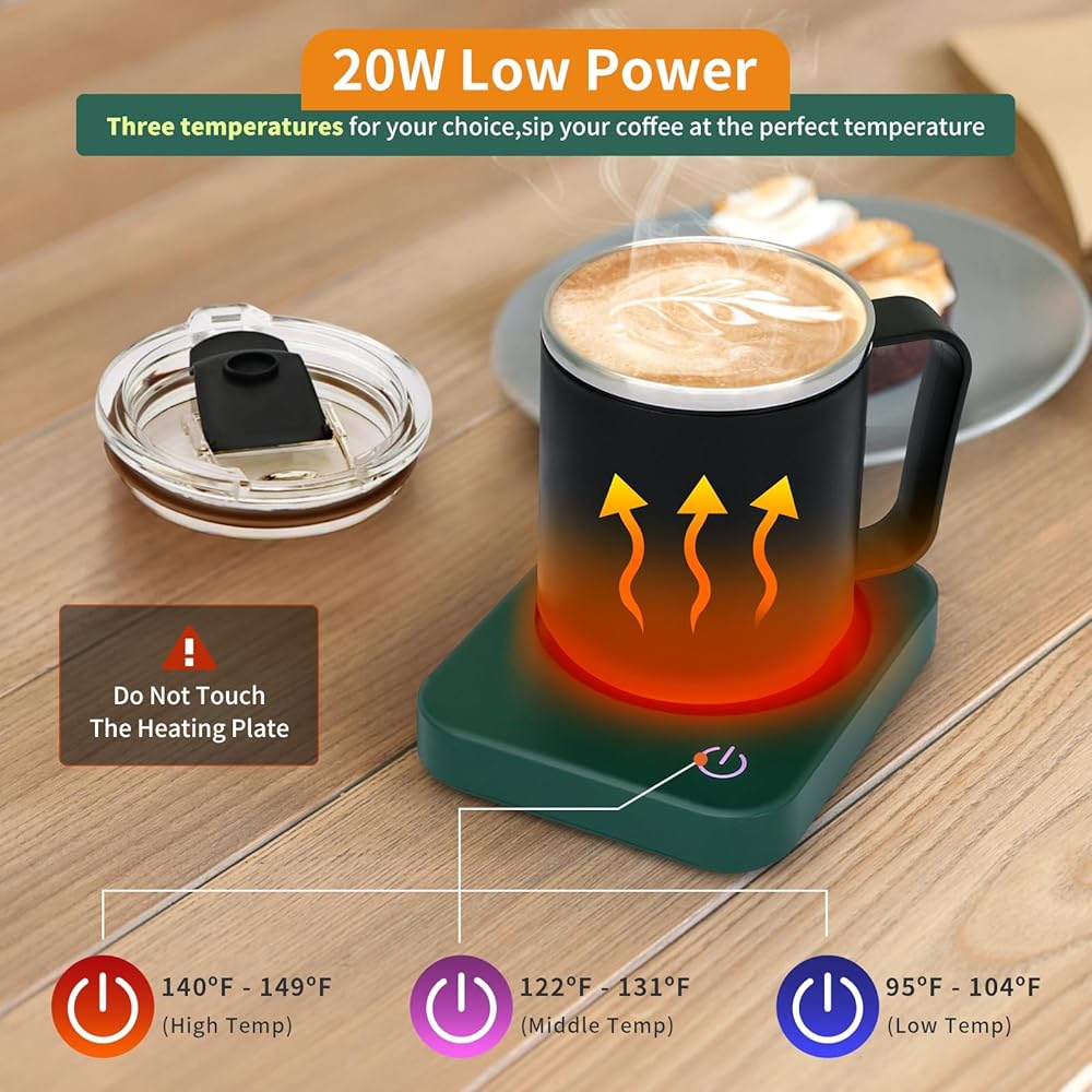 إعداد الأمان الذكي: يحتوي سخان كوب القهوة VOBAGA على إعداد تحذير لدرجة الحرارة المتبقية، وهو أكثر أمانًا من سخانات المشروبات الأخرى. يخبرك مؤشر الضوء الأحمر الوامض أن لوحة التسخين ساخنة وسوف تتوقف عن الوميض حتى تنخفض درجة الحرارة إلى 97 درجة فهرنهايت (36 درجة مئوية).