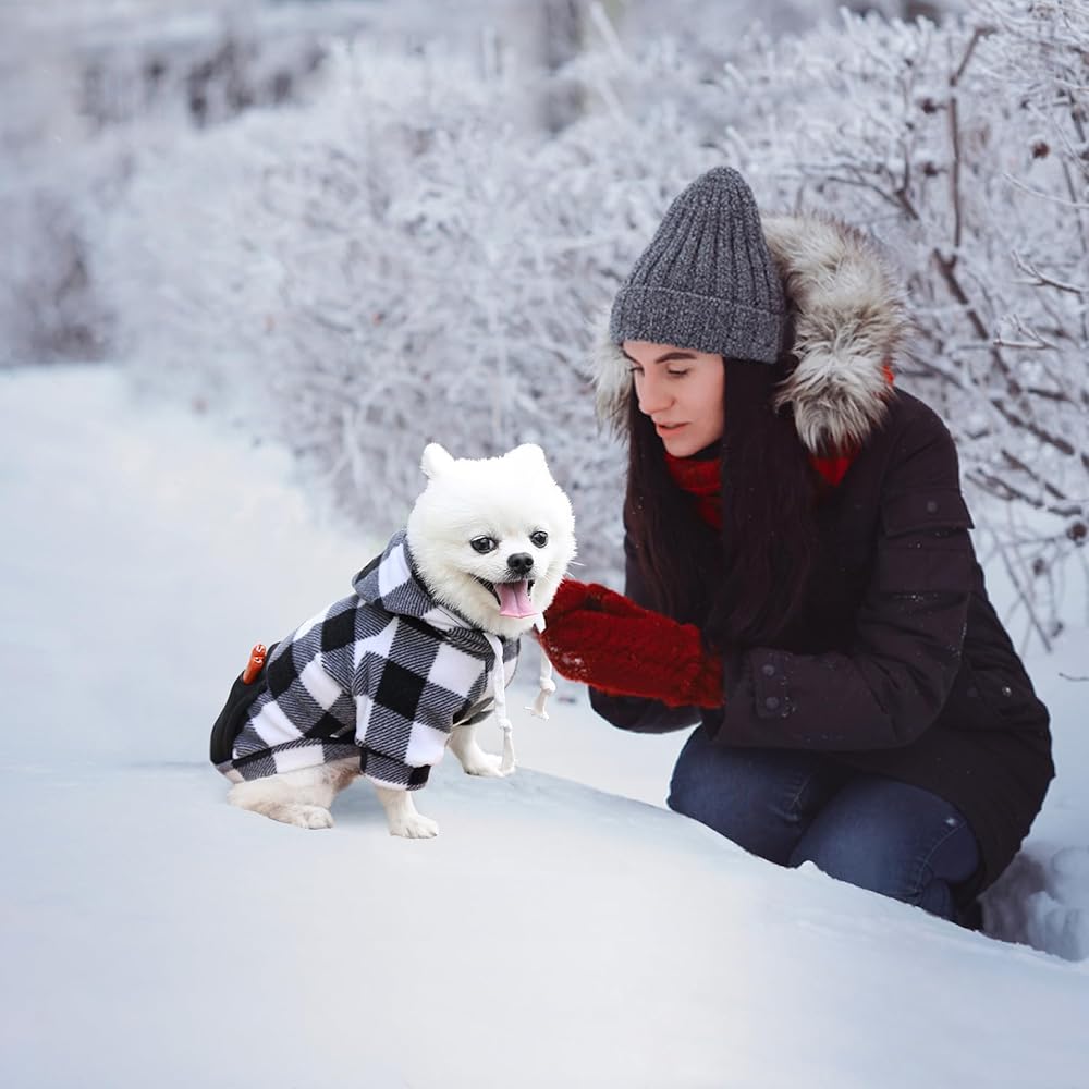 Soft & Warm: This dog plaid hoodie for Small Medium Large dogs is made with a blend of cotton, fleece with a liner for insulation: soft breathable and moderate thickness. Provide your pet the ultimate warmth when the temperature begins to drop and minimizing heat loss.