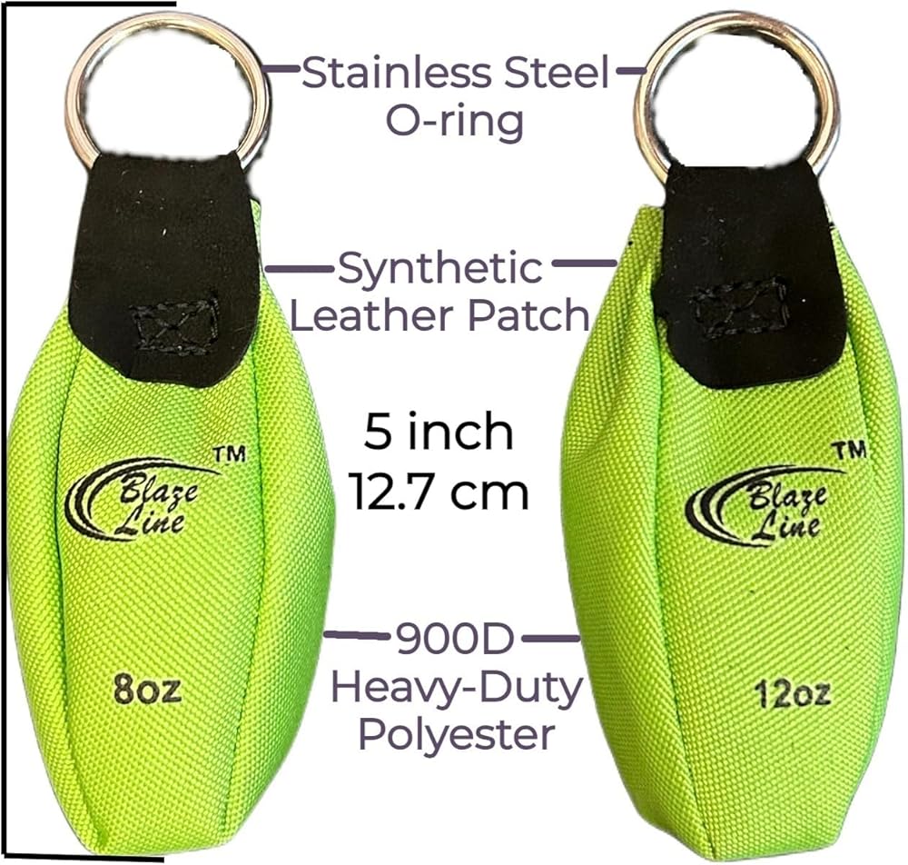 Blaze Line Throw Weight Pouch Bag is an essential work gear kit for any arborist, tree care professional or DIY, outdoor sports, mountaineer and serious climber. It offers simplicity and precision for your climbing setup so you can get your throw line and climb line where you need with ease. Crafted from durable 900D heavy-duty fabric and box-stitched a nickel-plated stainless-steel O-ring with leather patch, our arborist throw line weight bag for tree work is compact and weighty due to its high-density interior material. The 2-Pack combo set includes 8 OZ and 12 OZ weight pouches, allowing you to select suitable throw weight based on your throw power, height of the throw and thickness of the throw rope. The package also includes a carabiner for your convenience.