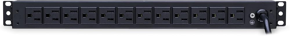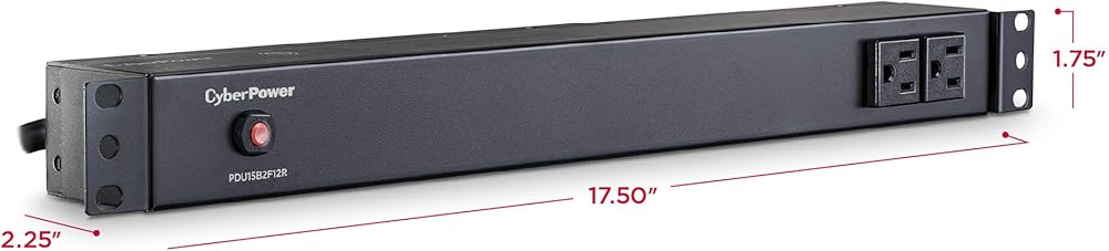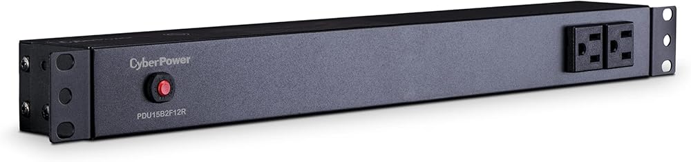 The CyberPower PDU15B2F12R, a 14-outlet (2 front, 12 rear) rackmount basic power distribution unit (PDU), provides 100 – 125 V 15A output. It distributes power to 14 NEMA 5-15R receptacles from a single NEMA 5-15P input with unfiltered electrical pass-through. Designed for datacenters and other electrically demanding applications, the PDU15B2F12R has rugged, industrial-grade metal housing and a 15-foot AC power cord. It can be mounted either horizontally or vertically, includes a cord retention tray, and is ETL/RoHS certified. A limited lifetime warranty covers defects in materials and workmanship in the product under normal use and conditions.