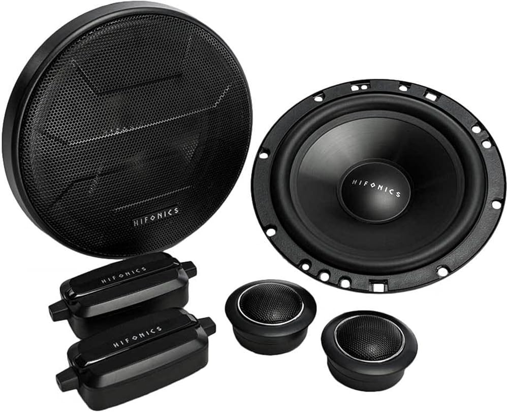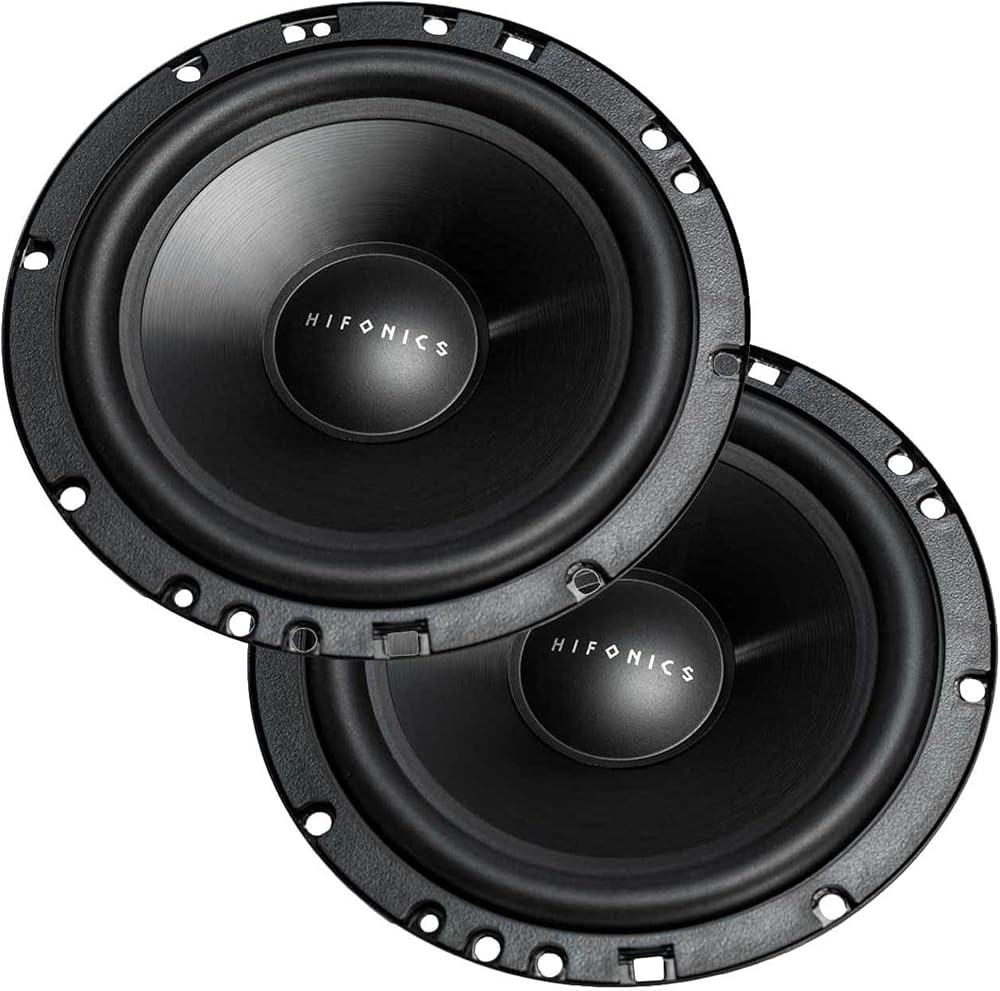 Revolutionize your car audio system when you install these 6 Hifonics 6.5 Inch 2 Way 400 Watt Component Speakers Systems. Each system comes with a pair of speakers, 12 dB in line crossover, all tweeter mounting hardware, and grills for midwoofers. The 6.5 inch speakers feature 60 watts of RMS power and 400 watts of maximum power handling. The neo mylar, soft dome, impact resistant tweeter elements provides clear highs to the 1 inch tweeter while handling plenty of power. The component speaker system also features rubber, moisture resistant rubber surround with high mid bass impact and lightweight, rigid, alpha cellulose cones for speed and deep bass.