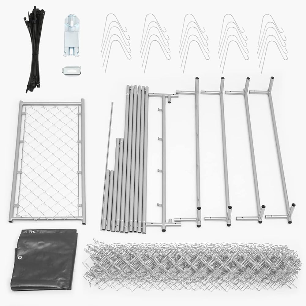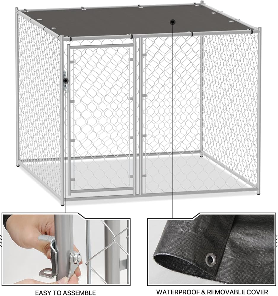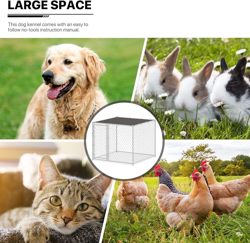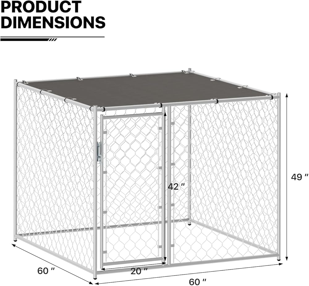 مادة ممتازة - بيت الكلاب ذو سلسلة ربط مصنوع من وصلة سلسلة مجلفنة وإطار فولاذي متين مطلي بمسحوق. يتم لحام زوايا الإطار قبل الطلاء لمنع الحواف الحادة وتوفير حماية أكبر ضد الصدأ والتآكل.
