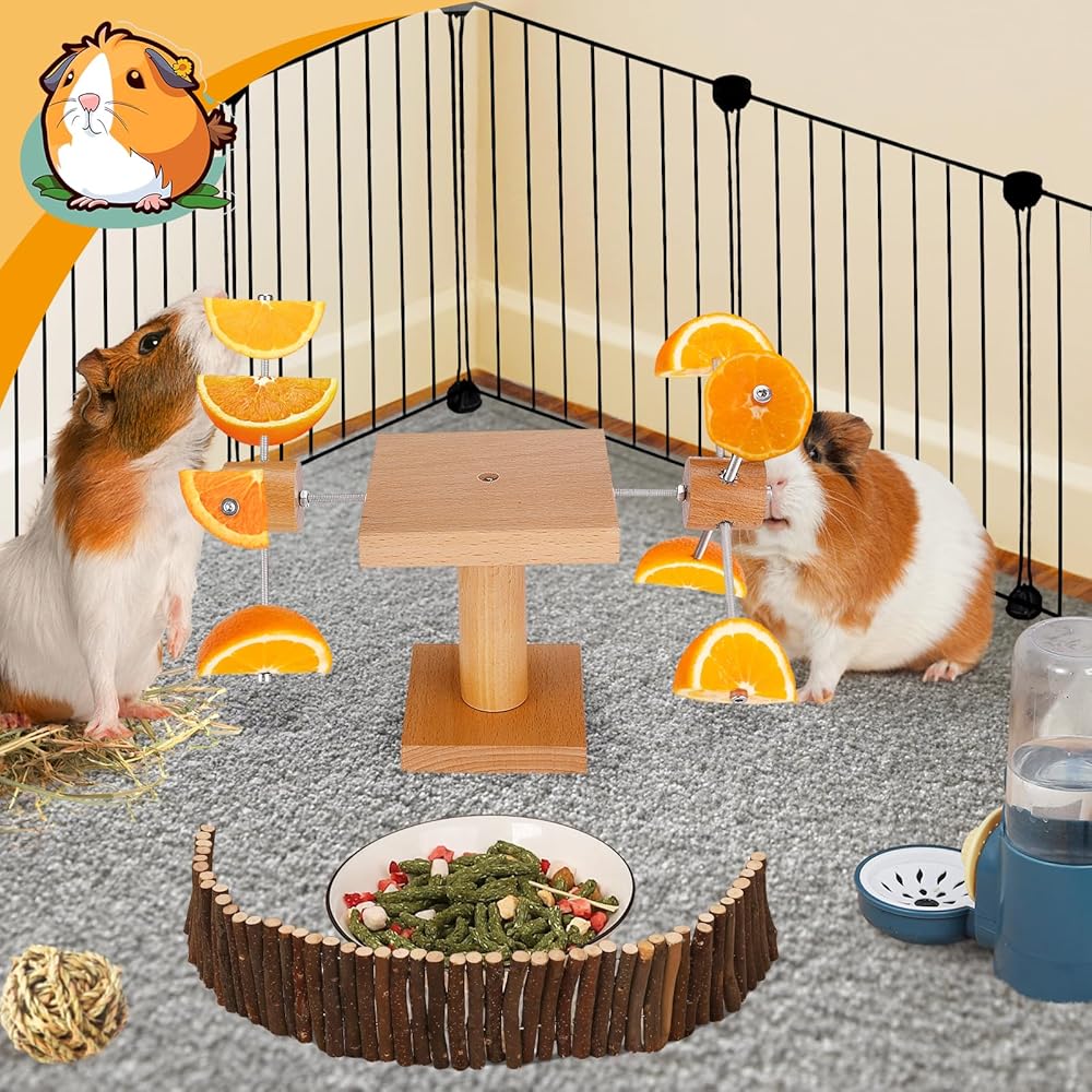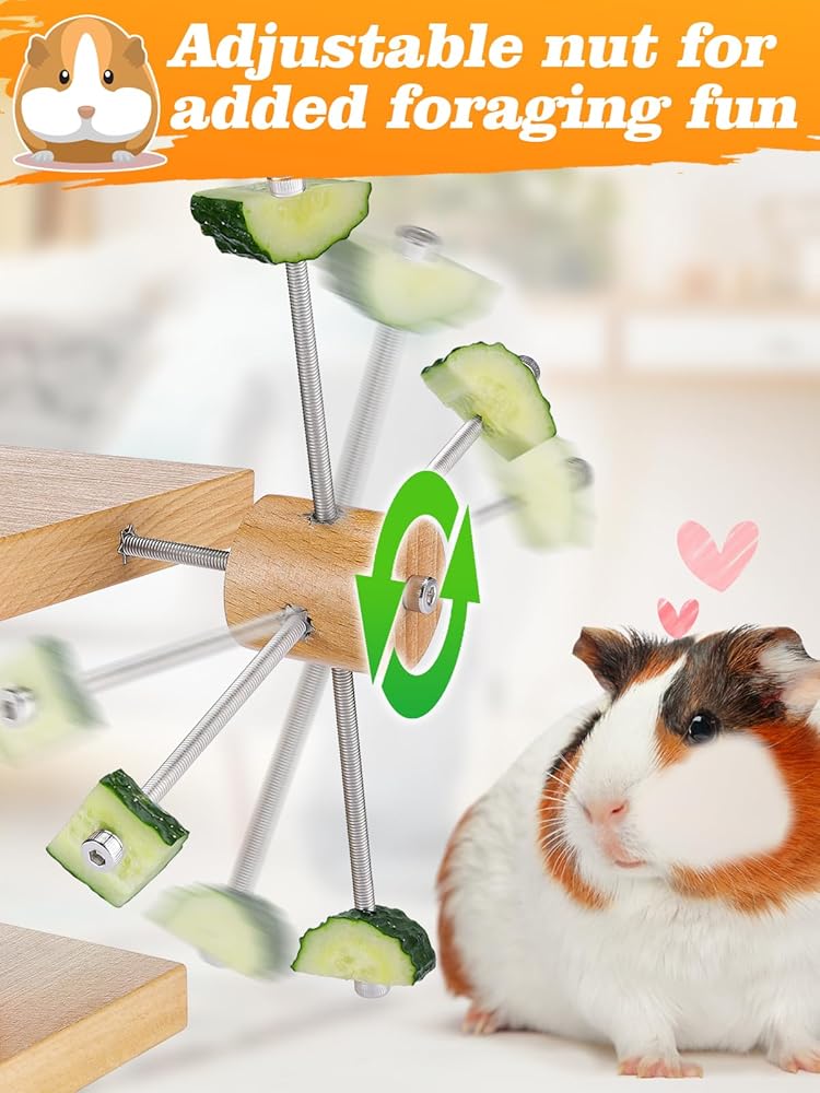 Safe and Reliable Material: Made of high-quality natural wood with a non-toxic varnish, this guinea pig enrichment toy is safe for your pet. Our rabbit toy is assembled with screws, sturdy and durable, providing long-lasting entertainment.