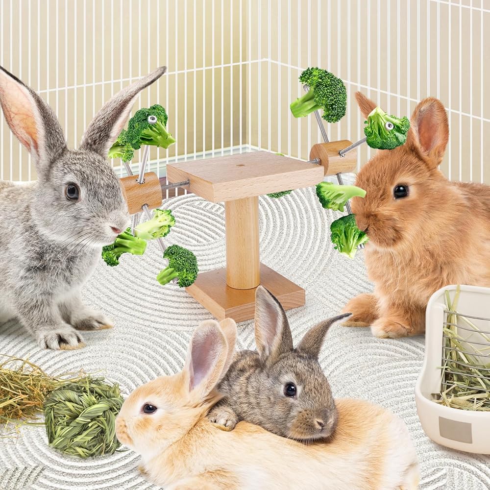 ألعاب خنزير غينيا من MEWTOGO - ألعاب أرنب خشبية غنية مع حامل طعام من الفولاذ المقاوم للصدأ قابل للتعديل، ألعاب تغذية أرنب تفاعلية للحيوانات الصغيرة الهامستر