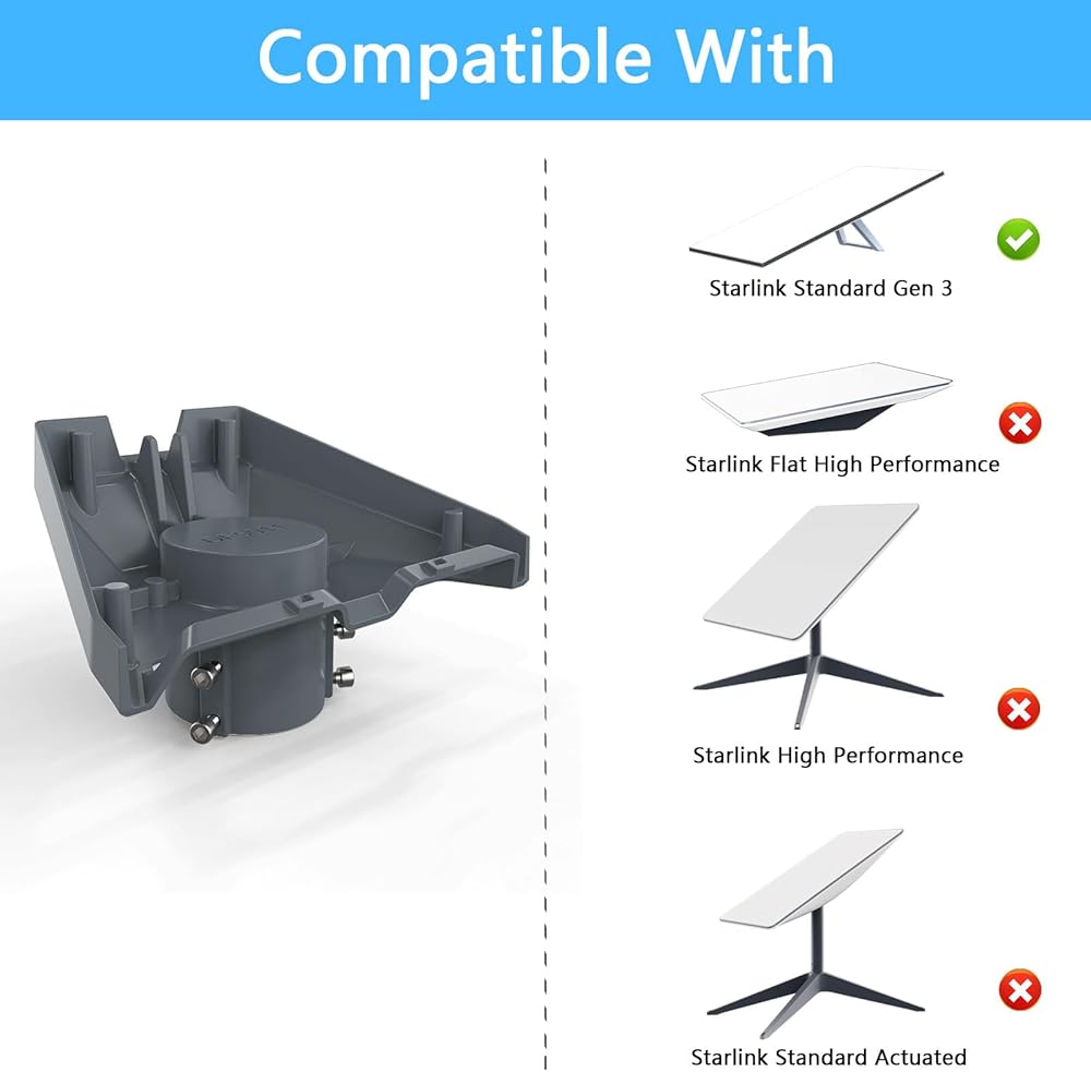 قابل للتكيف: يوفر حامل Starlink Gen 3 المرونة وسهولة تحديد موضع إشارات Starlink للحصول على الأداء الأمثل. إنه مصمم بدقة، ومتين ومستقر، ويمكن أن يوفر قوة تثبيت قوية ومقاومة للرياح لضمان عمل المعدات بثبات في الأحوال الجوية السيئة.