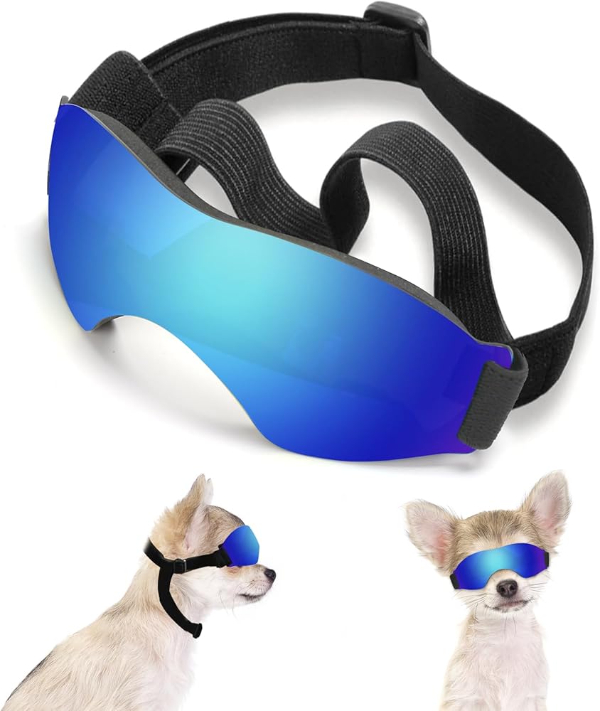 نظارات شمسية للكلاب الصغيرة، نظارات حماية من الأشعة فوق البنفسجية للكلاب الصغيرة إلى المتوسطة، نظارات مضادة للضباب للحيوانات الأليفة مضادة للرياح للجرو مع حزام قابل للتعديل (أزرق)
