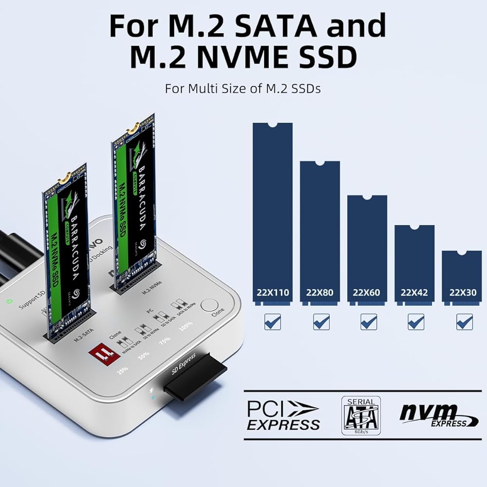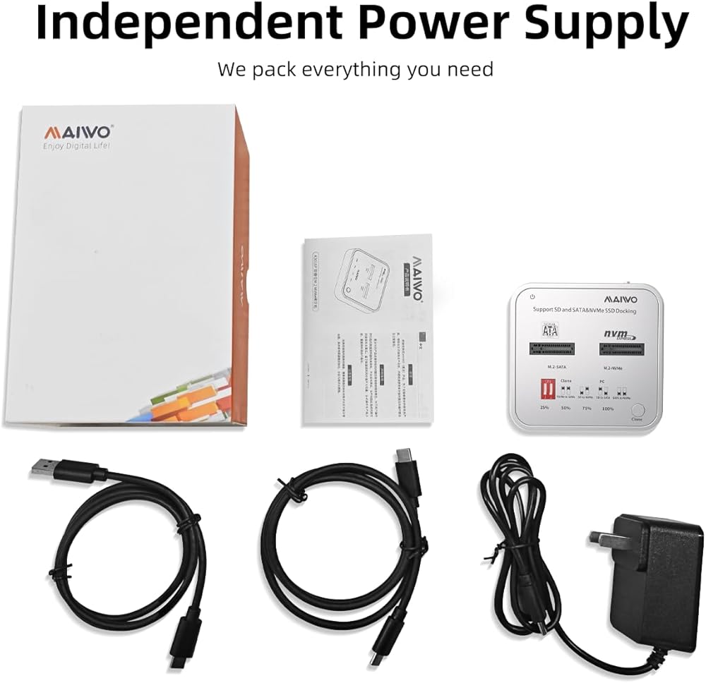 محطة إرساء MAIWO M.2 NVMe إلى M.2 SATA SSD، مستنسخ ثنائي SSD، نوع C USB3.1 GEN2 سرعة 10 جيجابت في الثانية، قارئ بطاقة SD، سعة 8 تيرابايت، يدعم النسخ دون اتصال (K3016CL)