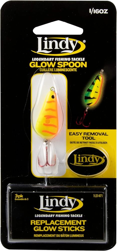 Lindy Fishing Tackle's revolutionary Glow Spoon gives ice anglers a new weapon for attracting fish and triggering strikes. Replaceable glow sticks to light up the plastic spoon, which radiates the light in the color of the spoon. The unique shape imparts a swimming action on the drop, while tungsten rattles call in gamefish from distance.