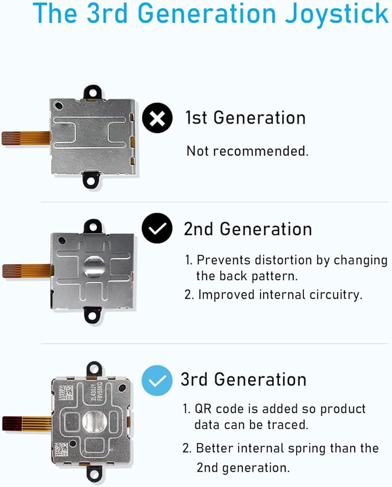 【4 x the 3rd Generation Joystick】-- The 3rd Generation Joystick is sturdy and enduring. This is newest version, we change the cable to highly conductive one, improve internal spring, increase the number of grooves. So You can reduce the frequency and cost of replacement. Perfect replacement analog joysticks work for Meta quest 3 controller, repair your drifting, blind spots, dead spots, not sensitive, can't center, damaged or broken, worn-out analog joystick.